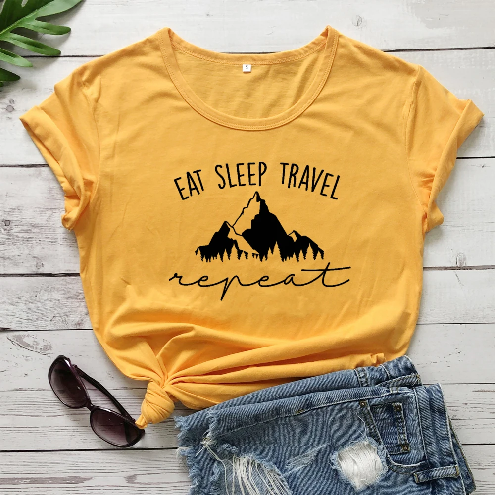 Женская уличная футболка Eat Sleep, уличная футболка для путешествий, летние хлопковые топы, Прямая поставка