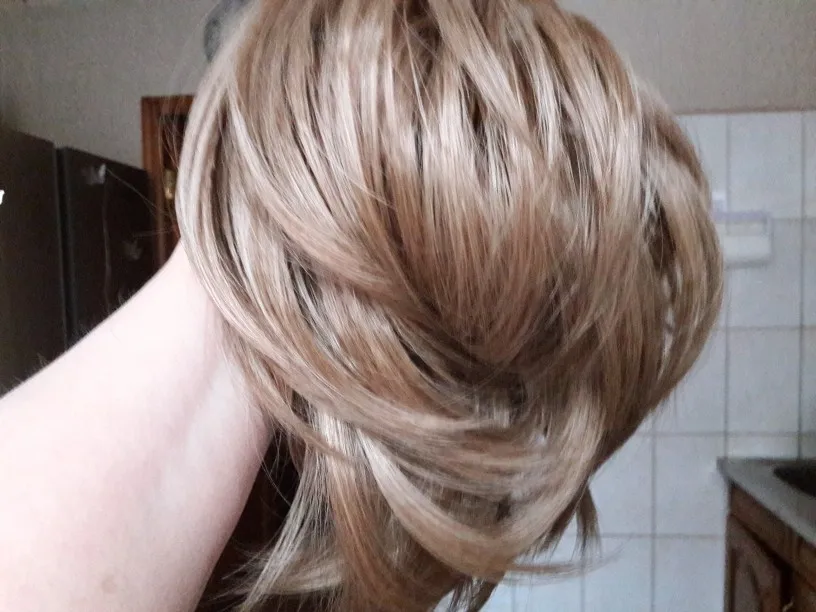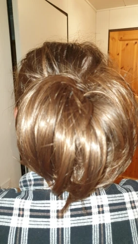 Me ha gustado mucho. Puesto, queda muy bien. El color es exacto al de mi pelo ( color rubio medio, con mechas de color rubio muy claro ), es el color perfecto para mi. Me lo pongo todos los días y nadie ha notado que es postizo, porque no tiene un brillo excesivo, por eso resulta muy natural. Cuando me lo quito, lo peino con un peine de tenedor, de esos azules que son para peinar el pelo rizado, así, no se le cae ningún pelo.