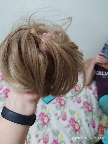 До СПб "волосы" шли 14 дней - супер! Синтетика, поблескивает на вспышку, но не более,чем мои свои мелированные. Волосы тяжёлые, рассыпчатые. Упакованы аккуратно, в сеточки, не мятые! Продавцу - респект и уважуха! Цвет похож на мой! Немного лезет, это норм, то что плохо прошито по краю, в целом аксессуаром довольна! Резинка пучка широкая для моего хвостика! нужны невидимки или шпильки, но это моя беда, а не продавца ))) Когда нет своих - такие штуки выручают. Хочу у них же парик теперь.