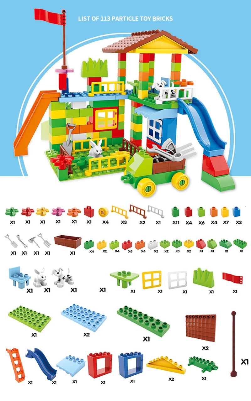 Название продукта: строительные блоки большого размера количество частиц: 113 шт/226 шт/89 шт/178 шт/168 шт/138 шт, которые вы выбрали. Размер: строительные блоки большого размера Материал изделия: экологически чистый АБС пластик возраст: >3 года обслуживание продукта: 45 ° стирка теплой воды посылка продукта: полипропиленовый пакет с пузырчатой безопасной упаковкой + Buliding инструкция по эксплуатации