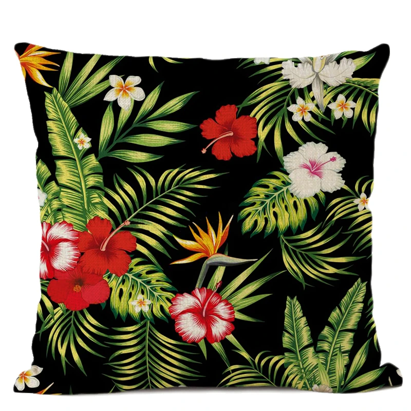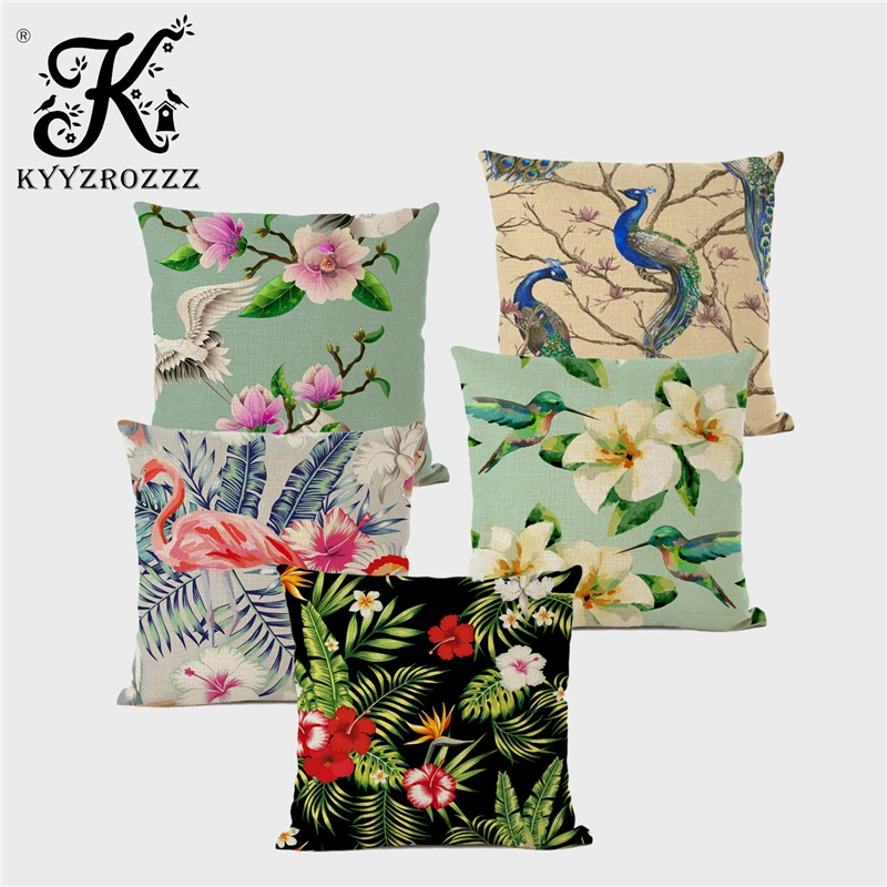 Тропические растения Цветочный чехол для подушки с принтом Павлин зимородок животный принт подушка диванная декоративная наволочка для подушки Cojines45CM