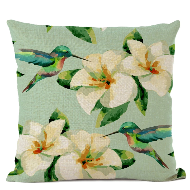 Тропические растения цветок чехол для подушки с принтом павлина Kingfisher животный узор Подушка Диван декоративная наволочка для подушки Cojines45CM