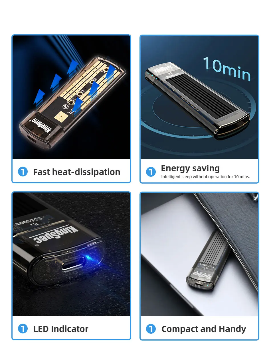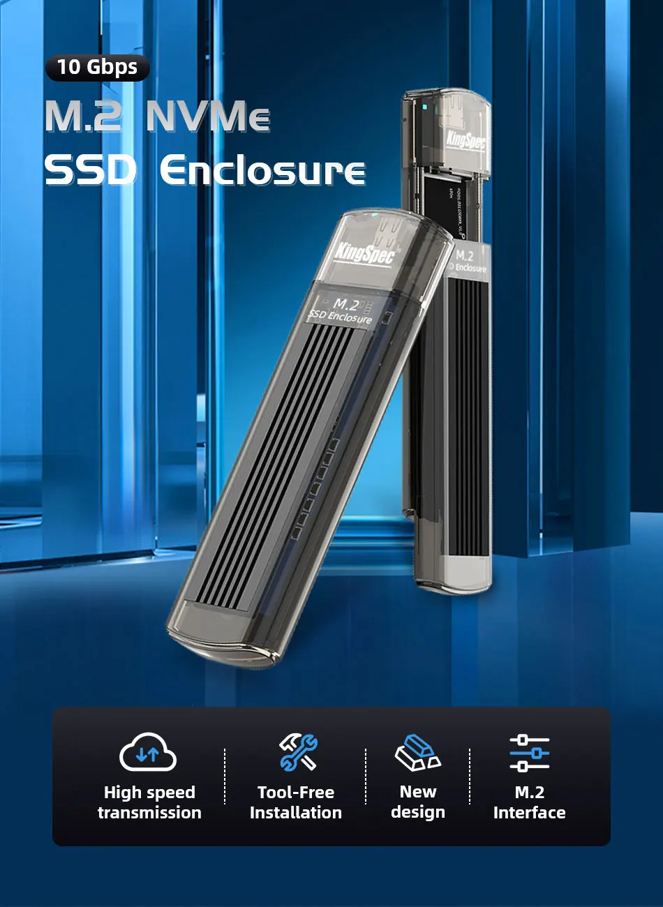 Корпус жесткого диска KingSpec M.2 NVME SSD PCIe 3,0, внешний жесткий диск для M.2 PCIe nvme ssd, твердотельный накопитель