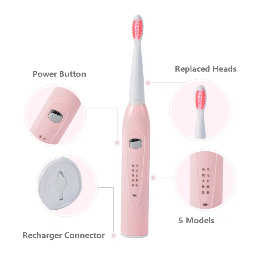 Перезарядка, автоматическая звуковая электрическая зубная щетка с 4 шт., сменные насадки для взрослых зубных щеток, автоматическая эко зарядка через usb, 5 моделей
