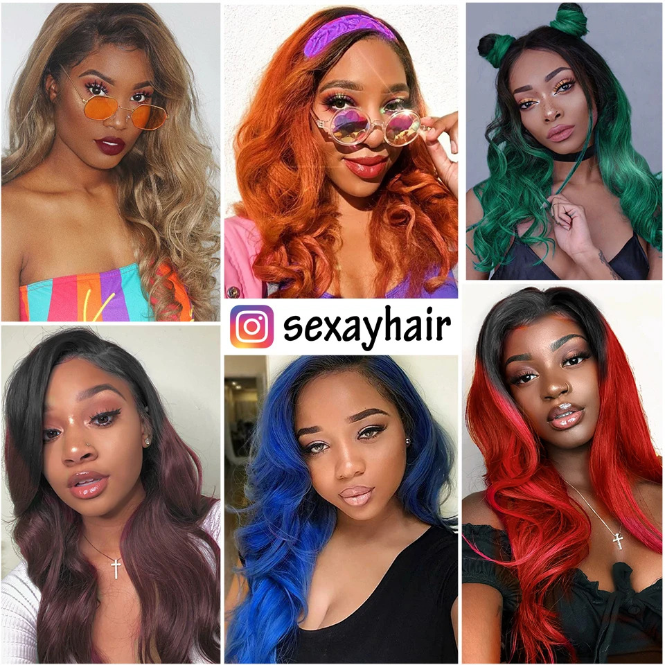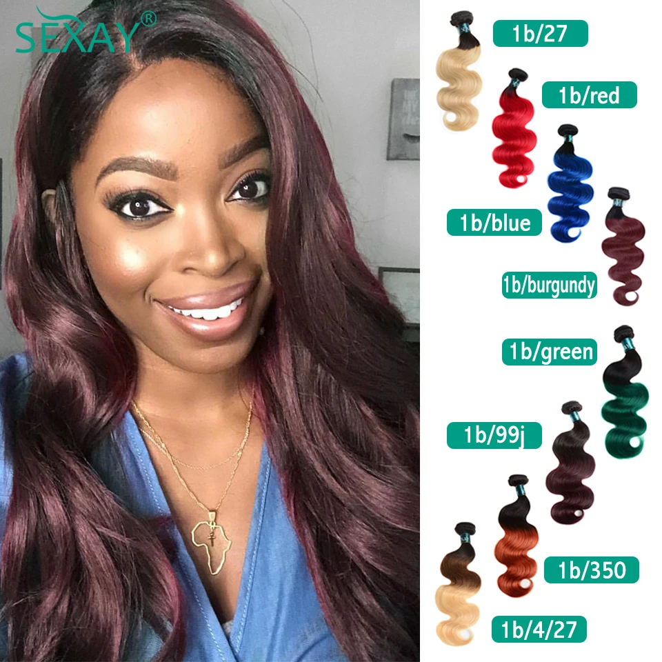 Волнистые бразильские волосы Sexay, красные, с эффектом омбре, 1B27, бордовые, 99J, зеленые, красные, синие, оранжевые, предварительно окрашенные, волнистые