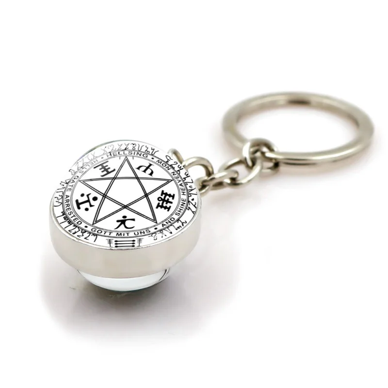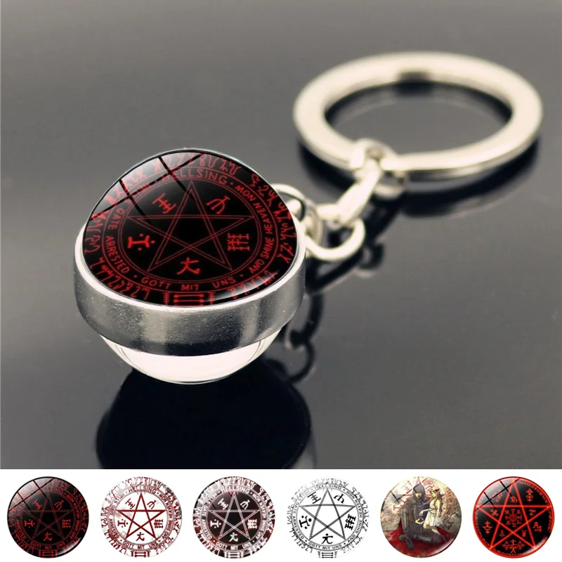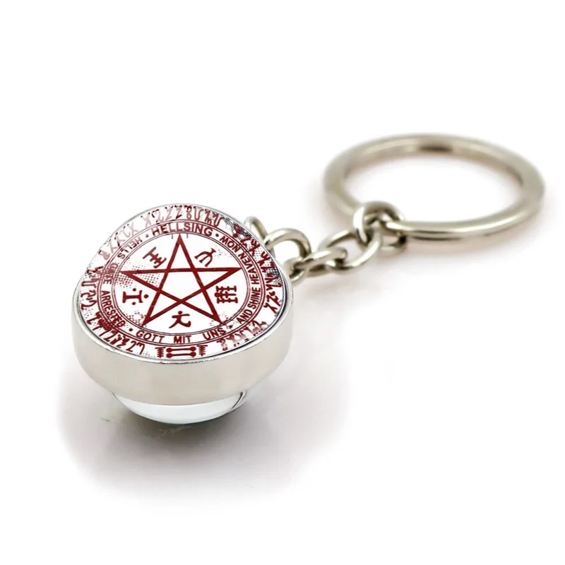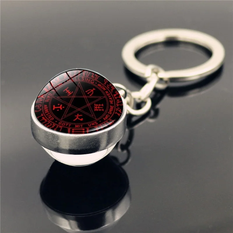 Hellsing Alucard пентаграмма брелок ювелирные изделия модный двухсторонний стеклянный шар брелок для ключей кольцо держатель для мужчин женщин