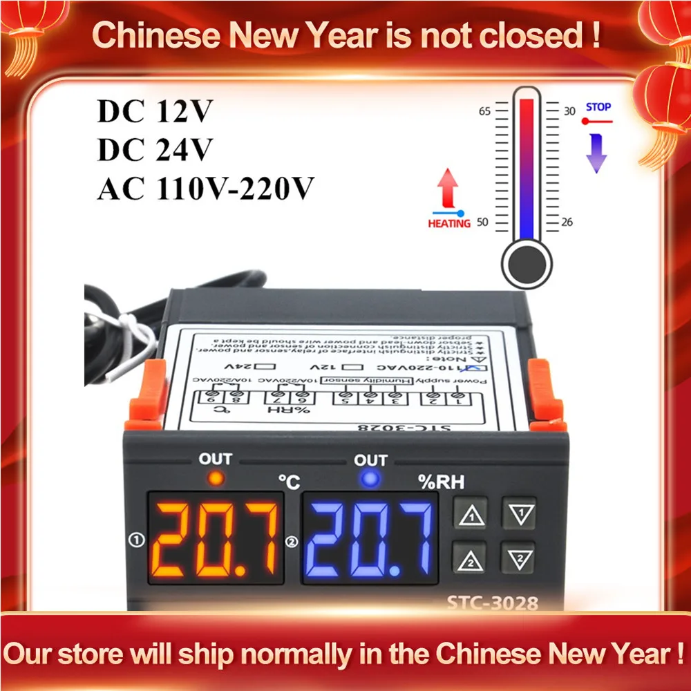 STC-3028 регулятор температуры и влажности воздуха 12 В, 24 В, 220 В, для домашнего холодильника, охладитель, термометр, гигрометр, переключатель, Скидка 40%