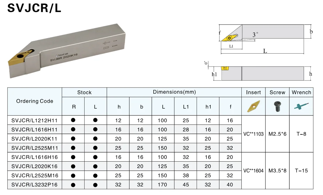 Это Внешний поворотный держатель инструмента SVJCR2020K16/svjcl20k16 для 1 шт., если вы ищете другие модели, пожалуйста, свяжитесь с нами.