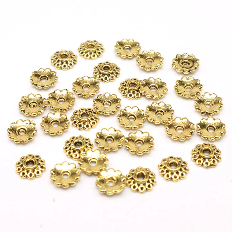 Оптовая Продажа тибетские посеребренные колпачки из цинкового сплава маленькие цветочные бусины колпачки смешанные разделительные бусины узор бусины колпачки 5 мм 100200 шт.