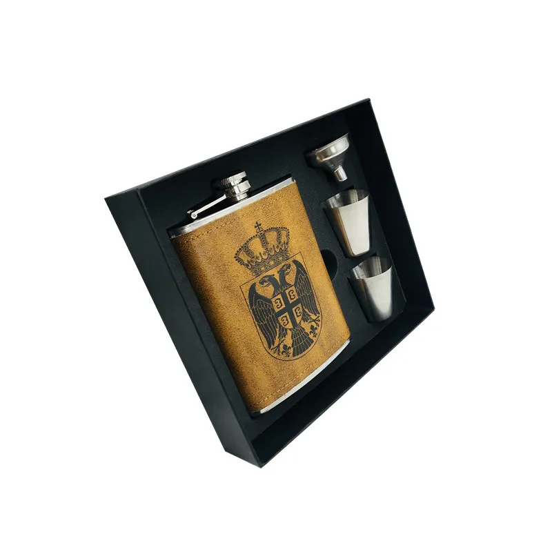 Bpa бесплатно 8 унций виски бутылка водки кувшин 304 Нержавеющаясталь спиртных плоская фляжка с орлом из искусственной кожи подарочная упаковка, набор в коробке