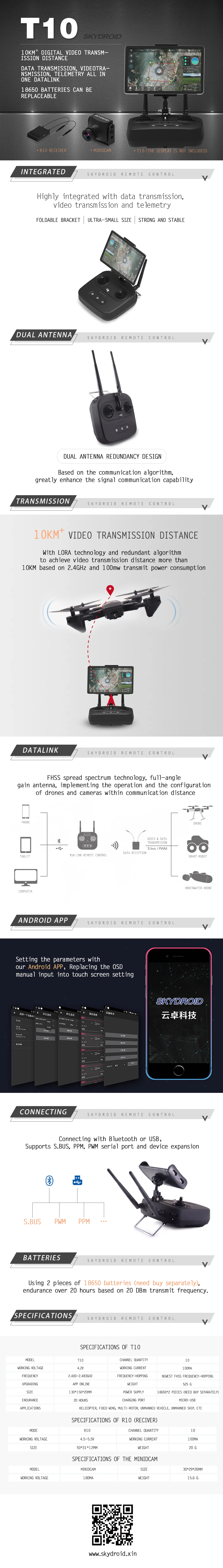 SKYDROID T10 2,4 ГГц 10CH FHSS передатчик с мини-приемником R10R10 ...