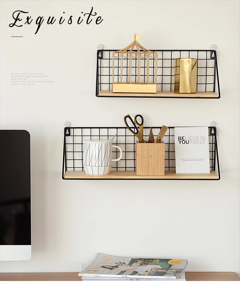 Новая офисная настенная полка, железная деревянная полка для кухни, спальни, офиса, декоративные настенные полки, органайзер, DIY стойка для хранения стола