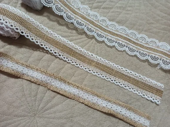 Декоративная лента из натуральной джутовой мешковины, 2 млот, 25 мм, лента из мешковины с кружевом