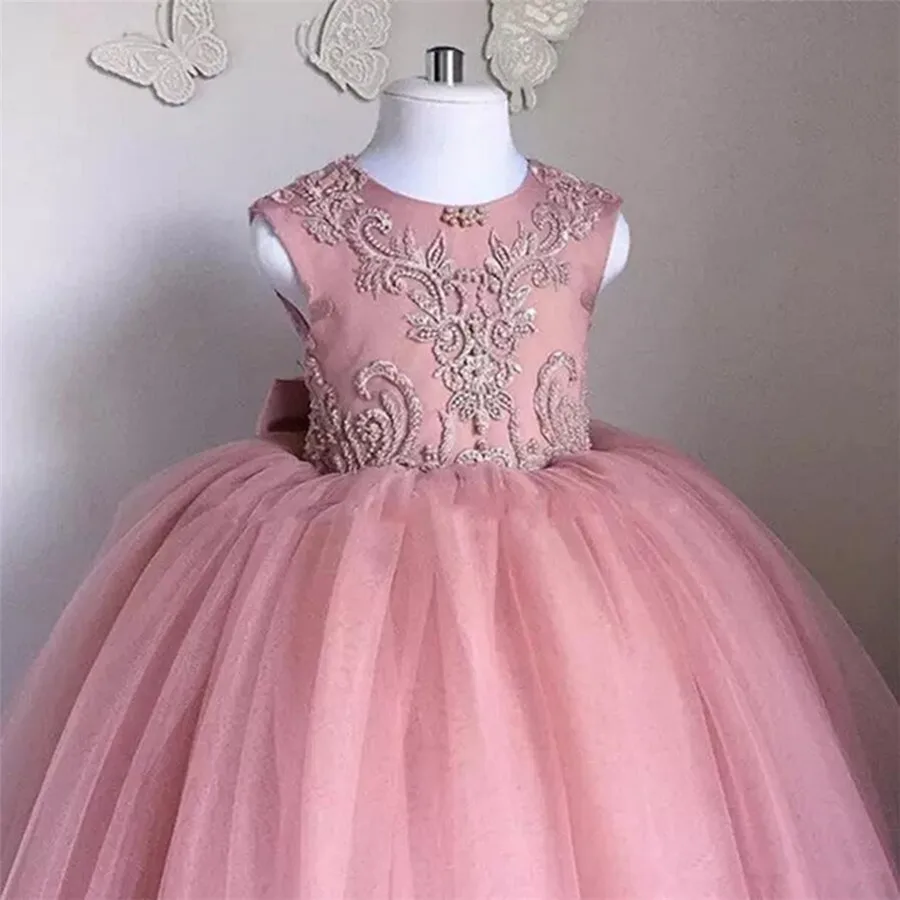 Детское платье без рукавов с круглым вырезом, бусинами, бантом, бле...