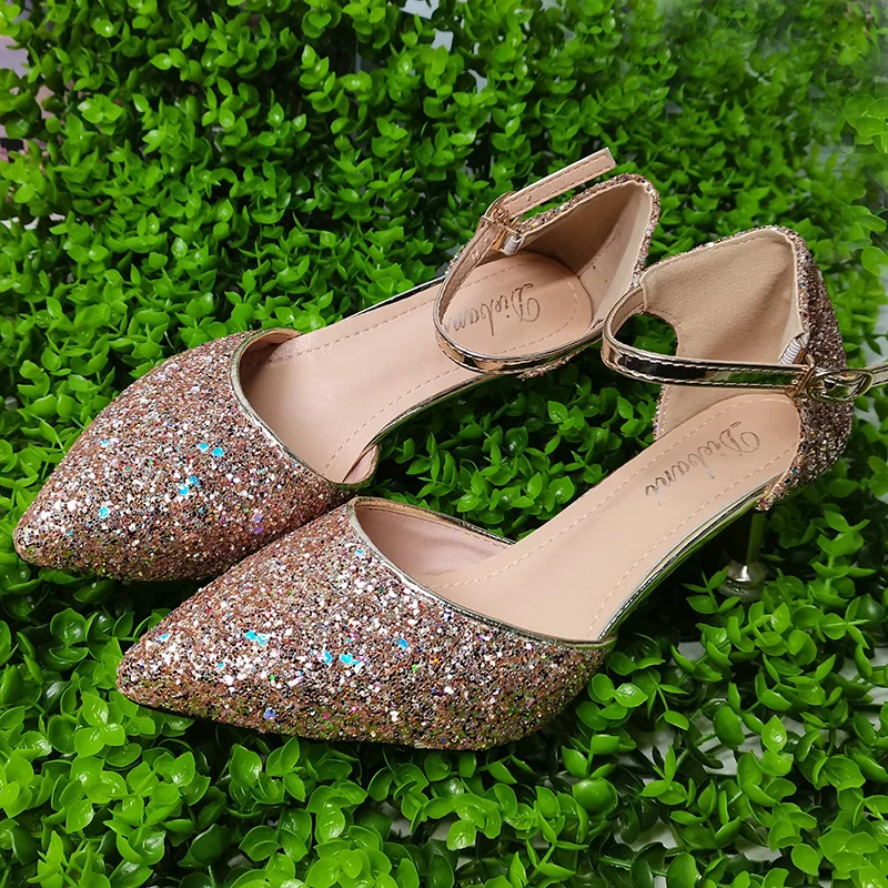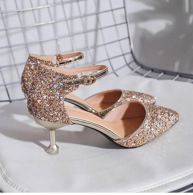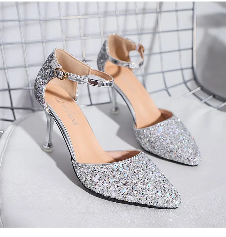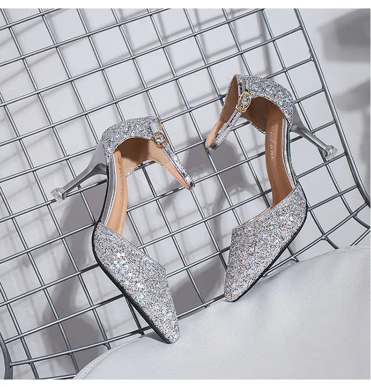 Туфли-лодочки женские Серебристые на высоком каблуке, Свадебная обувь для невесты, вечерние туфли-лодочки с блестками, с острым носком, на шпильке, золотистые
