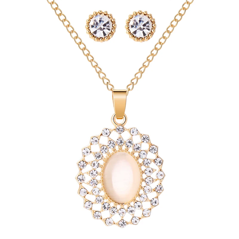 Женский ювелирный комплект из колье и серёг, с кристаллами