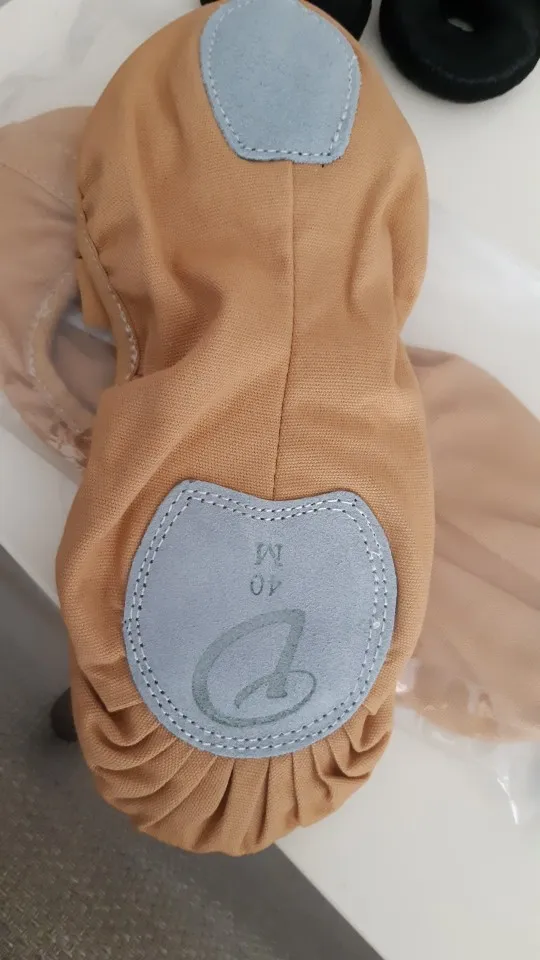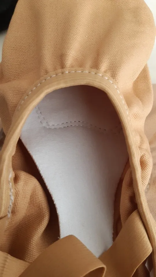 Они были слишком большими, поэтому я попытался постирать их несколько раз, чтобы уменьшить их, что сработало, но есть еще куча ткани, которая заставляет их выглядеть очень непохожими по сравнению с моими настоящими розовыми балетками из капезио и блок.
