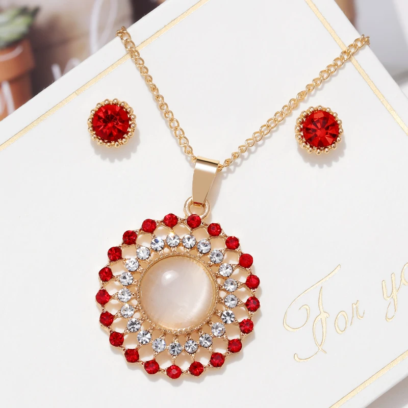 Новый дизайн, круглые опаловые Ювелирные наборы, ожерелье, цвет золото, полые круглые подвески, Кристальные серьги-гвоздики
