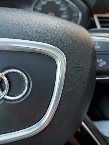 Тонкая алюминиевая рамка. Она кривая, ровно не вклеить, видно что лютый колхоз, скотч плохой. Рамка без пропила, когда сработает подушка она полетит в вас и прошьёт голову на сквозь.