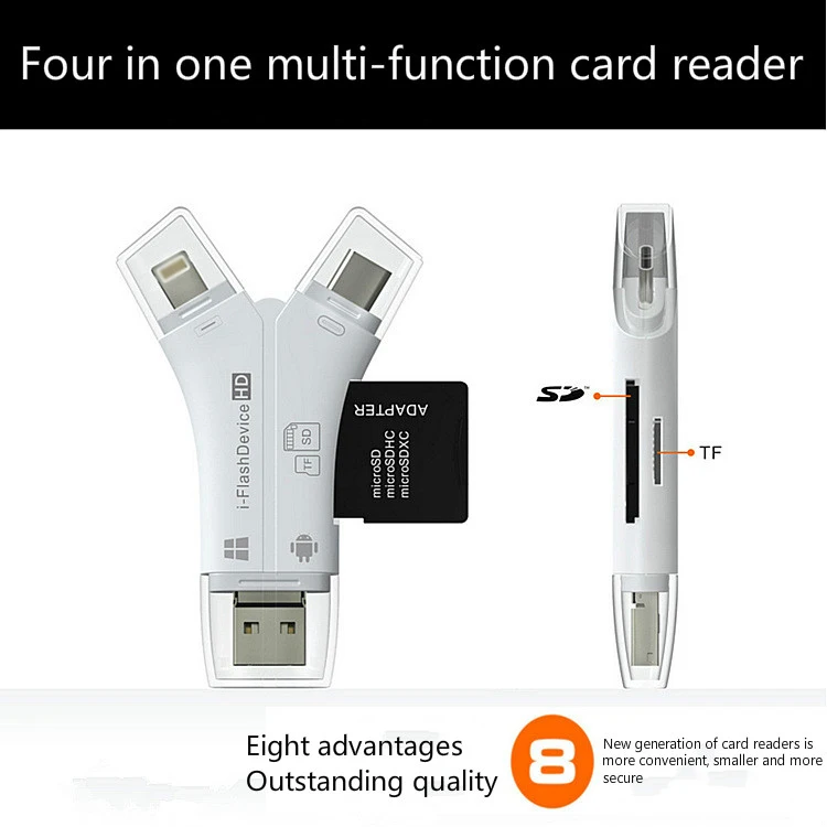 4 в 1 кардридер USB Type-C Micro USB подсветка высокоскоростной Универсальный кардридер для Apple Android компьютерные удлинители