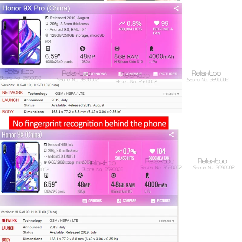 Fit for 3For huawei honor 9x Premium 6.59inch