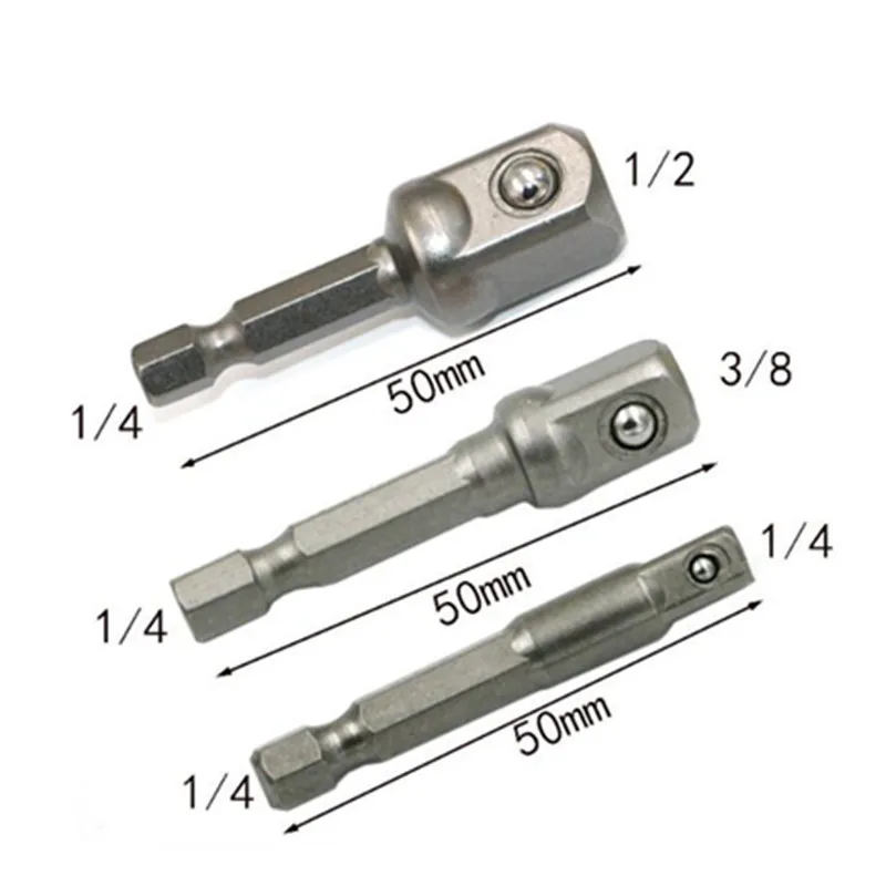 3 шт. гнездо адаптера 1/4 3/8 1/2 дюйма гайка водителя розеток удара шестигранный хвостовик удлинитель сверла барные сеты 3 коротких стержни 50 мм