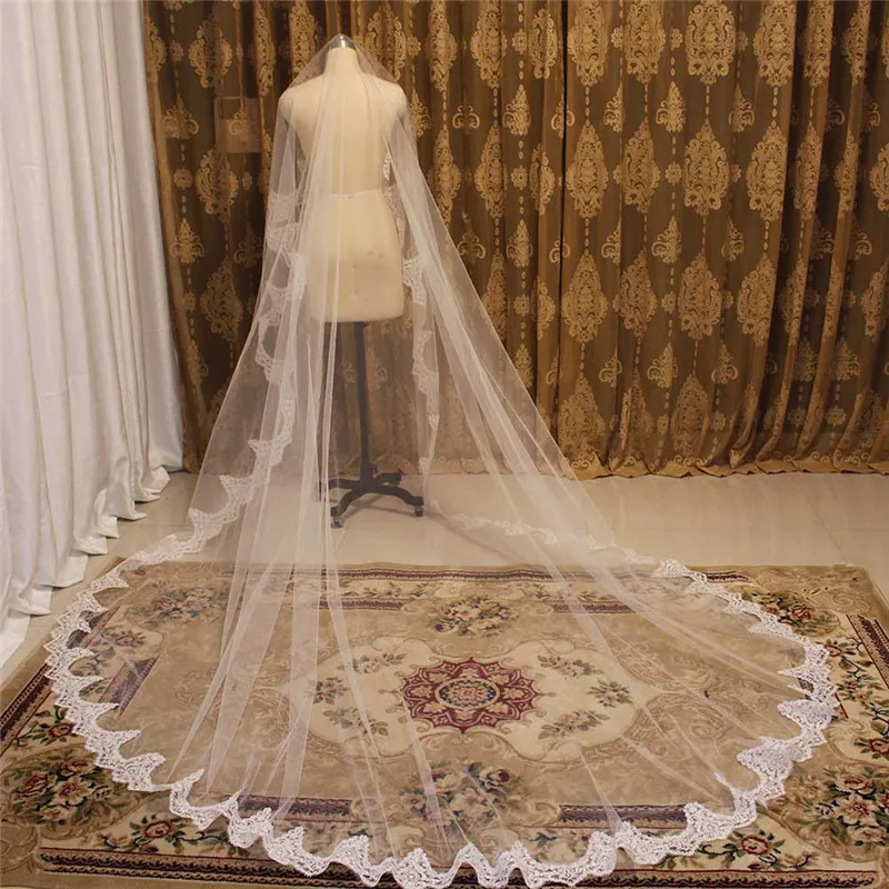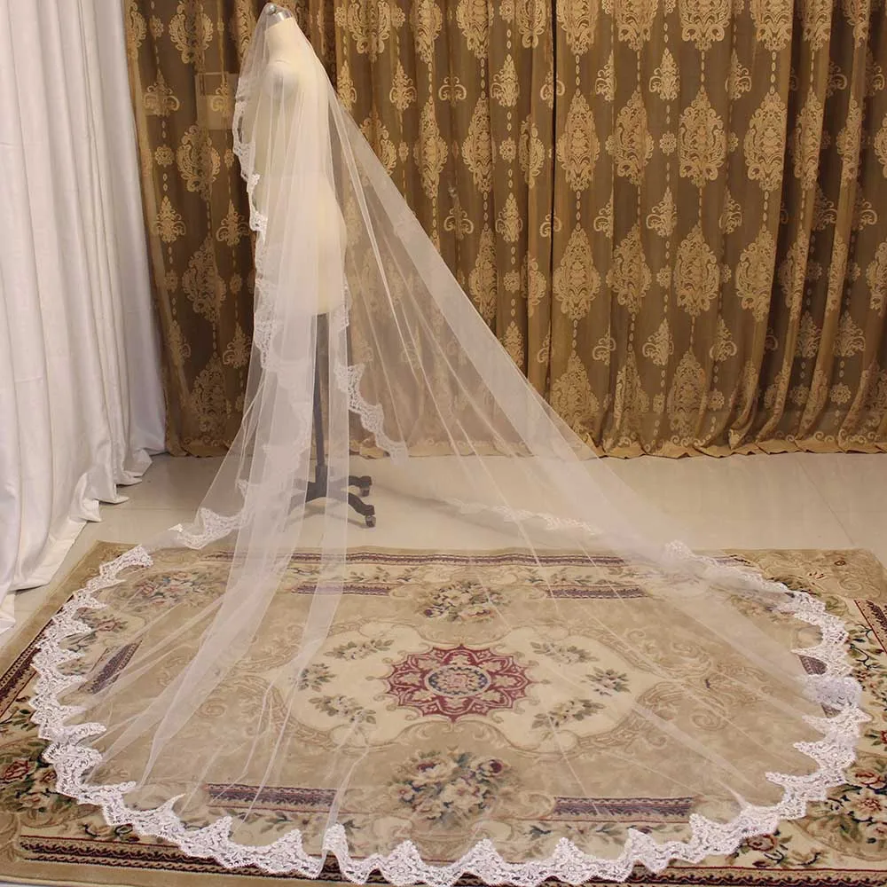 Длинные Кружевные Свадебные вуали 3 м длинная белая цвета слоновой ...