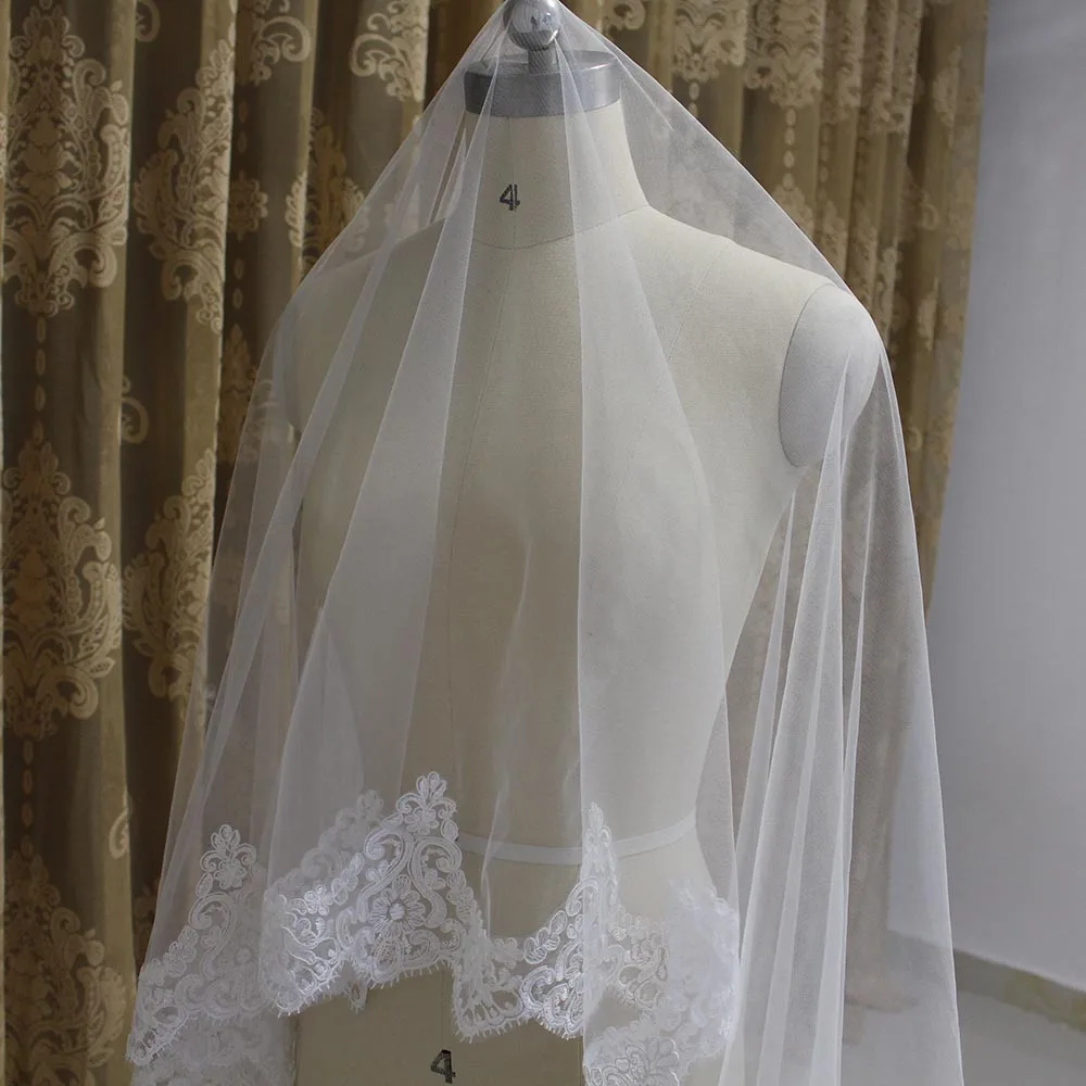 Однослойная кружевная свадебная фата без гребня, 3 метра, крышка для лица, фата невесты, белая Фата цвета слоновой кости, аксессуары для невесты