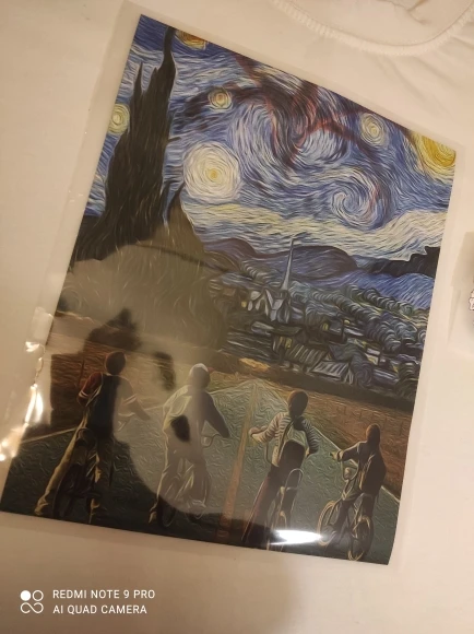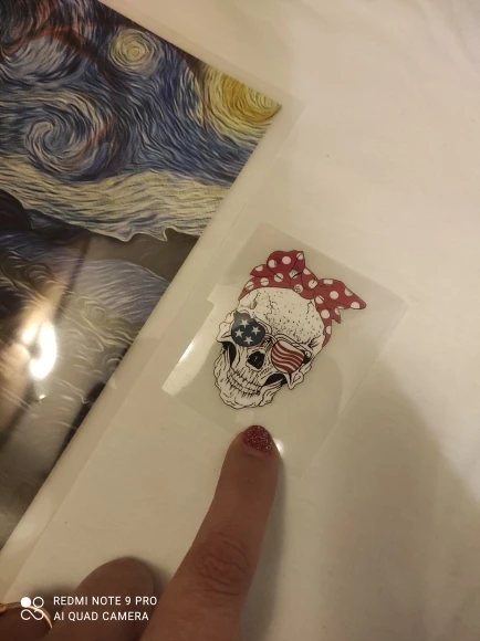 Отличный товар! Доставка за 20 дней. Принт был намотан на специальный валик, так же там была инструкция, и маленькая термонаклейка в подарок. О качестве. Большую картинку я никуда не перевела пока, опробовали на маленькой. Это очень просто, любой справится, главное дать остыть наклейке, прежде чем снимать плёнку. Я специально взяла рельефную ткань, отрезала резинку от носка))) примерно такая же вязка на водолазках например. Рисунок отлично лёг. Разумеется эта ткань тянется сильнее, чем ткань футболок. На фото видно, как выглядит рисунок, если его растянуть. Ни разрывов, ни трещин. Все прекрасно. Картинка чёткая Огромное спасибо продавцу, обязательно закажу еще