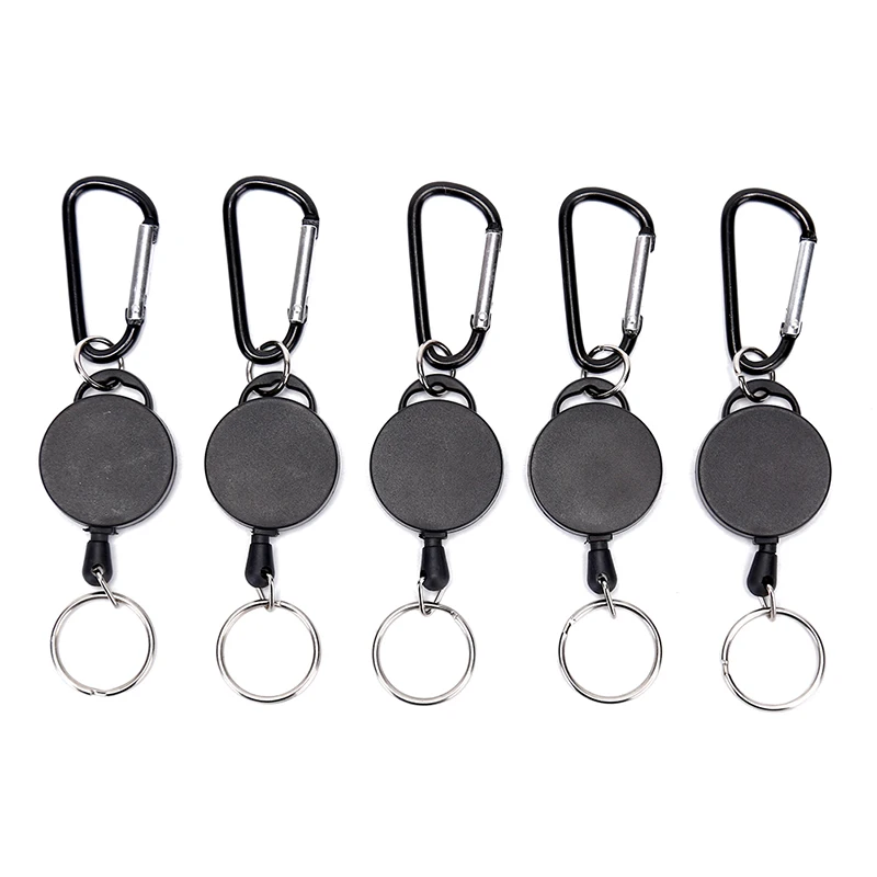Брелок для ключей, стальной шнур, черный трос, брелок, бейдж, катуш...