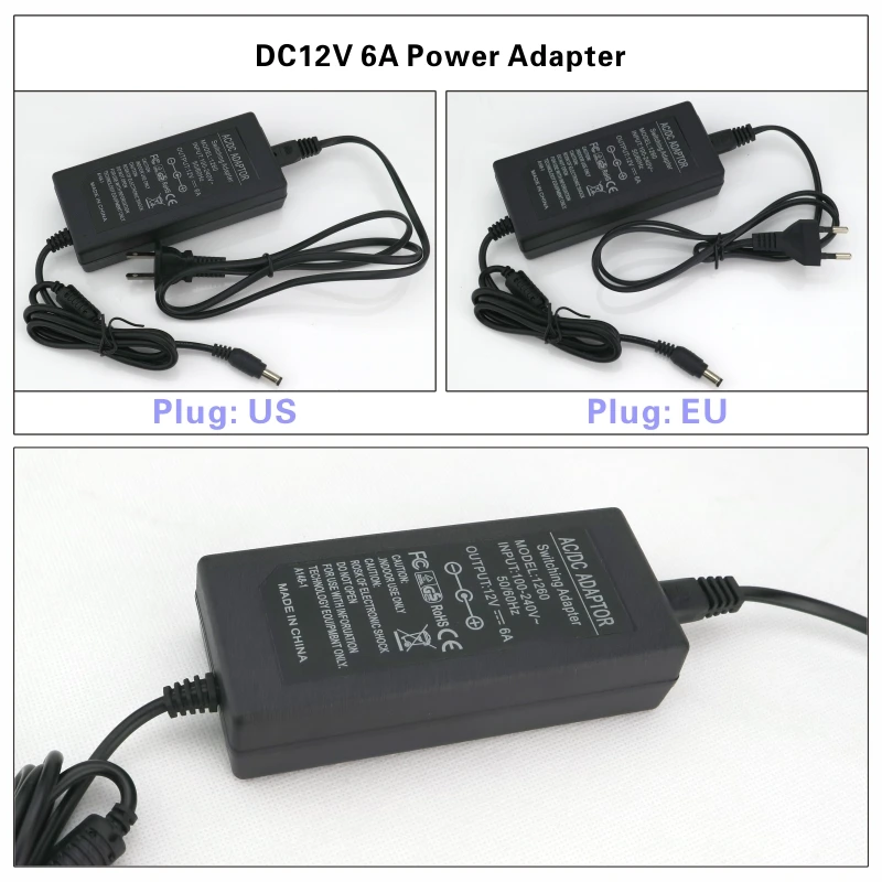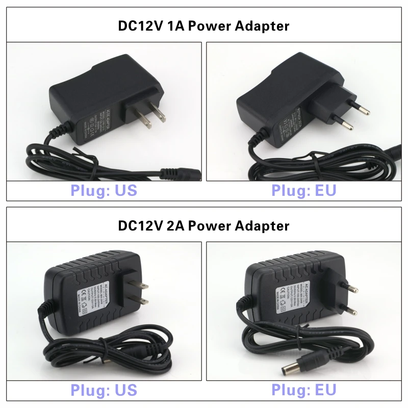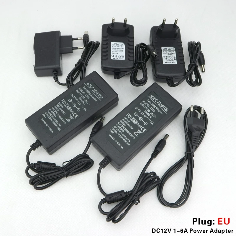 Адаптер питания для светодиодной ленты, источник питания 110 В переменного тока в 12 В постоянного тока, 12 Вольт, трансформатор для освещения стандарта ЕС, США, 1 А, 2 А, 3 А, 5 А, 6 А