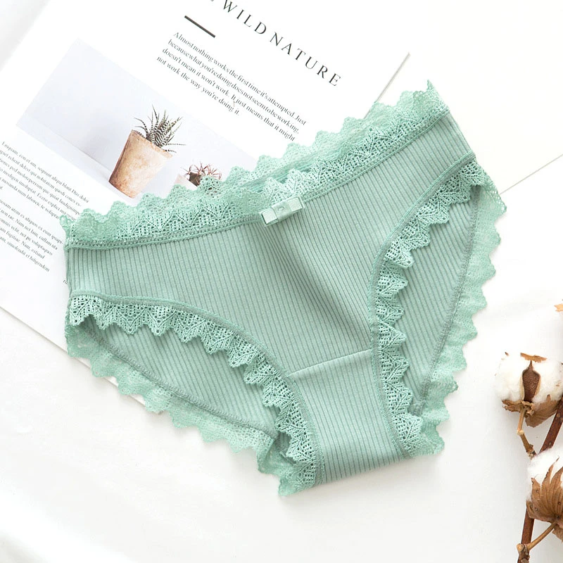 Трусы женские кружевные хлопковые бесшовные с бантиком