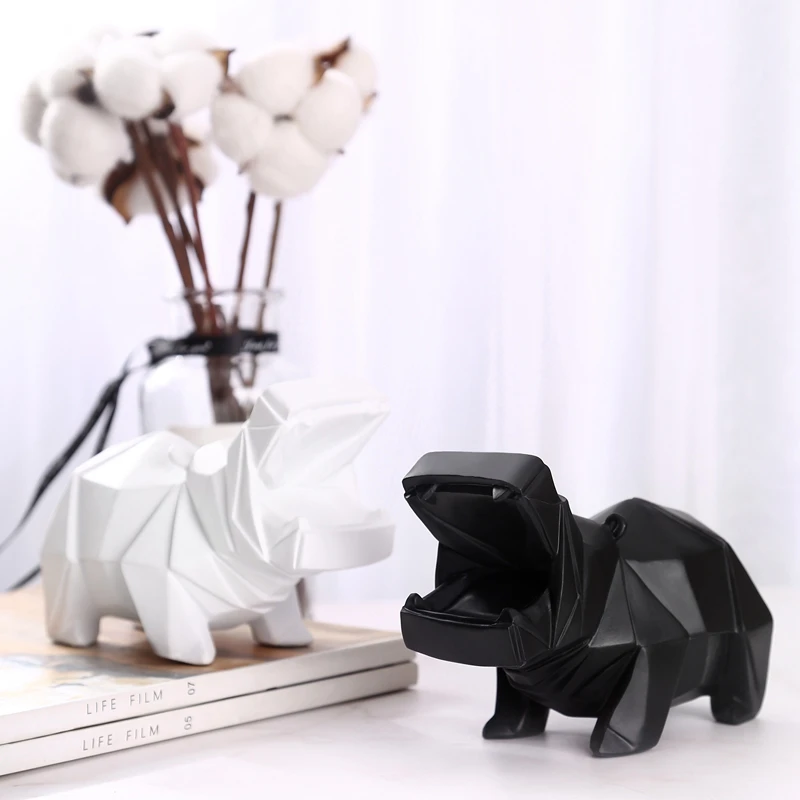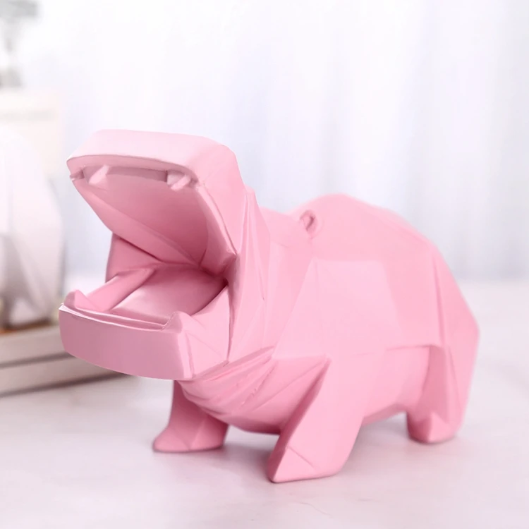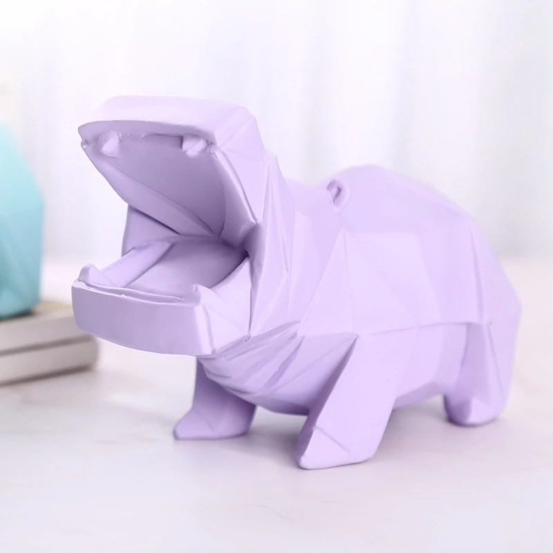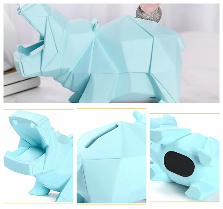 Копилка в виде бегемота с абстрактным геометрическим рисунком, домашняя детская Милая мебель, цветная статуя гиппопотама из смолы, декоративное ремесло, подарок для детей