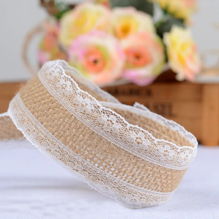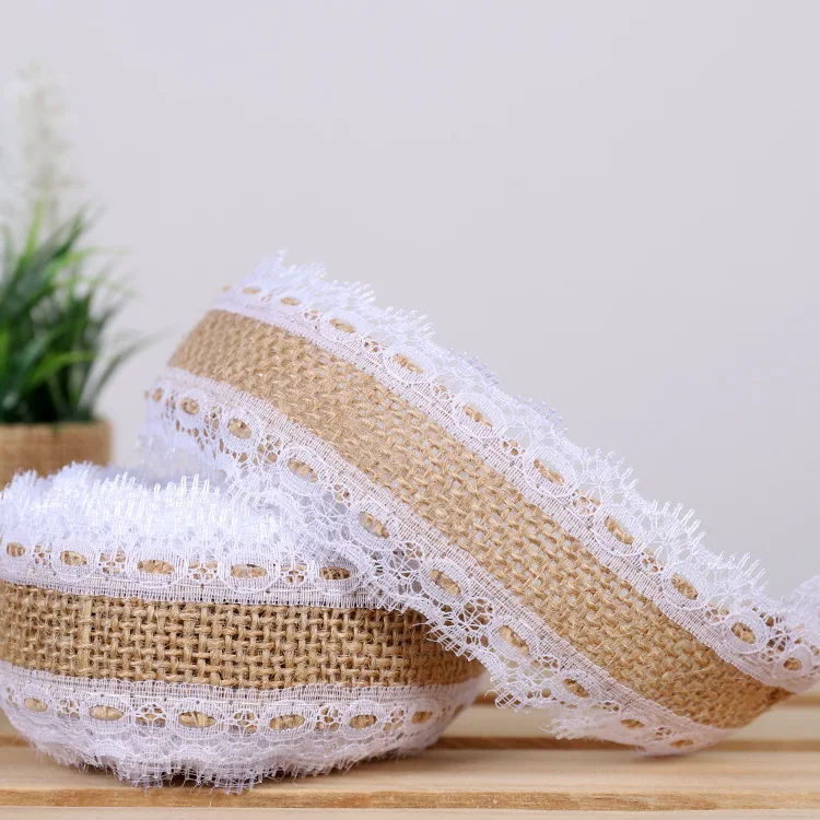 Лента из натуральной джутовой мешковины, 10 млот, 25 мм, с белой кружевной отделкой, винтажная деревенская свадьба, декорация рукоделие хобби