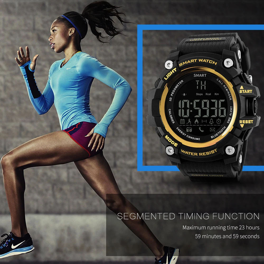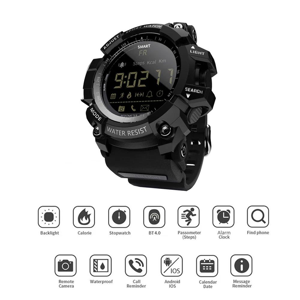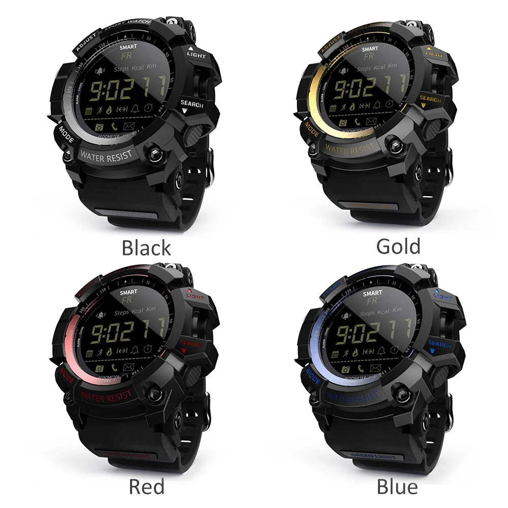 Срок службы батареи до 12 месяцев в режиме энергосбережения, LOKMAT MK16 имеет военный и прочный вид. Это практичные стильные часы, которые стоит приобрести. Описание товара-Смартфон соединен с приложением через BT 4,0. Стабильное, быстрое и Супер Низкое потребление.-Шагомер: Установите цель своего здоровья и просматривайте свою повседневную деятельность, проверяйте и анализируйте данные в любое время.-Простое и понятное функциональное меню, управление одной кнопкой, простота в использовании.-ЖК-дисплей отображает шаги, расстояние и калории.-3 группы звукового будильника, вы ничего не пропустите.-Профессиональный секундомер поддерживает отображение времени и фона.-IP67 (или 5ATM) Стандартная защита от пыли и воды, выдерживает брызги или короткое погружение в воду.-12 месяцев в режиме ожидания в режиме экономии, без хлопот при частом зарядке. Примечание:1) не нажимайте кнопку под водой.2) Не снимайте заднюю крышку самостоятельно. (Задняя крышка требует профессионального оборудования для демонтажа и установки.) 1. Водонепроницаемость 5 атмПодходит для повседневного использования, например, плавания, рыбалки и т. д. (не подходит для дайвинга и подводного плавания). 2,24 часов мониторинга спорта в реальном времениШаги ходьбы, расстояние ходьбы и потребление энергии и т. Д. Данные всегда у вас под рукой. 3. Профессиональный секундомерВы можете носить его, занимаясь спортом, что делает вашу жизнь более приятной. 4. Напоминание о сообщенииЗвуковой сигнал, чтобы напомнить вам о входящих звонках и сообщениях. 5. Совместимость с Android и iOSПодключите телефон для отображения активности или Используйте приложение Sports +. Параметры:Чип: SI-BW03Система: EX WATCH 1,0Экран: FSTN / FullViewBT: BT4.0 (расстояние <10 м, без препятствий)Совместимость: Android 4,0 или более поздняя версия, iOS 8,0 или более поздняя версияУровень водонепроницаемости: IP67 / 5ATMВремя работы в режиме ожидания: около 5 месяцев (при высоком потреблении); Около 8 месяцев (при нормальном использовании); 12 месяцев (при режиме энергосбережения)Приложение In-device: Sports +Языки приложения: китайский (традиционный), китайский (упрощенный), английский, русский, французский, итальянский, немецкий, испанский, португальский, японский, польский, турецкий.Функции: будильник, секундомер, трекер активности (количество шагов/количество сожженных калорий/расстояние), уведомление, удаленная камера, световой циферблат, автоматическое отображение времени (дата/неделя/час/минута/секунда), 12/24 часов. Характеристики:Модель: MK16Цвет: черный/красный/синий/золотой(Опционально)Материал корпуса: ТПУМатериал ремешка: ТПУЦиферблат Диаметр: 5,5*5,3 см/2,16 * 2.08inЦиферблат Толщина: 1,7 см/0.66inРемешок для часов Ширина: 2,2 см/0.86inДлина Часов: 28 смВес часов: 72 г/2,53 унцийРазмер посылка: 10*8*6 см/3,93*3,14*2,36 дюймаВес посылка: 143 г/5,04 унций Посылка:1 * часы1 * Руководство пользователя