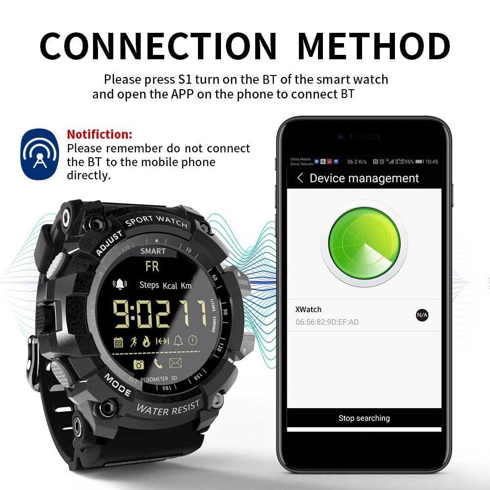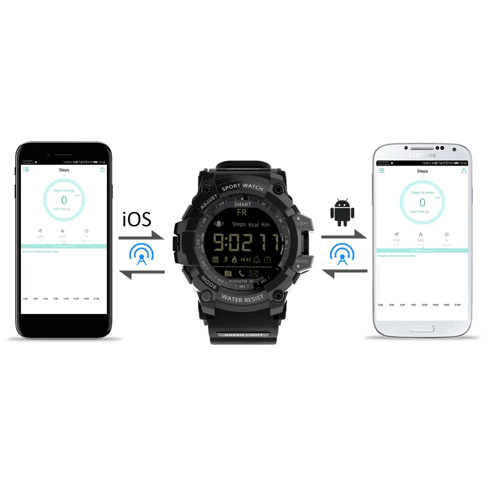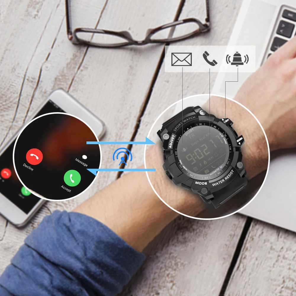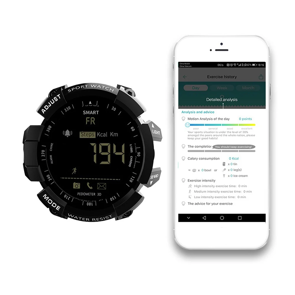 Срок службы батареи до 12 месяцев в режиме энергосбережения, LOKMAT MK16 имеет военный и прочный вид. Это практичные стильные часы, которые стоит приобрести. Описание товара-Смартфон соединен с приложением через BT 4,0. Стабильное, быстрое и Супер Низкое потребление.-Шагомер: Установите цель своего здоровья и просматривайте свою повседневную деятельность, проверяйте и анализируйте данные в любое время.-Простое и понятное функциональное меню, управление одной кнопкой, простота в использовании.-ЖК-дисплей отображает шаги, расстояние и калории.-3 группы звукового будильника, вы ничего не пропустите.-Профессиональный секундомер поддерживает отображение времени и фона.-IP67 (или 5ATM) Стандартная защита от пыли и воды, выдерживает брызги или короткое погружение в воду.-12 месяцев в режиме ожидания в режиме экономии, без хлопот при частом зарядке. Примечание:1) не нажимайте кнопку под водой.2) Не снимайте заднюю крышку самостоятельно. (Задняя крышка требует профессионального оборудования для демонтажа и установки.) 1. Водонепроницаемость 5 атмПодходит для повседневного использования, например, плавания, рыбалки и т. д. (не подходит для дайвинга и подводного плавания). 2,24 часов мониторинга спорта в реальном времениШаги ходьбы, расстояние ходьбы и потребление энергии и т. Д. Данные всегда у вас под рукой. 3. Профессиональный секундомерВы можете носить его, занимаясь спортом, что делает вашу жизнь более приятной. 4. Напоминание о сообщенииЗвуковой сигнал, чтобы напомнить вам о входящих звонках и сообщениях. 5. Совместимость с Android и iOSПодключите телефон для отображения активности или Используйте приложение Sports +. Параметры:Чип: SI-BW03Система: EX WATCH 1,0Экран: FSTN / FullViewBT: BT4.0 (расстояние <10 м, без препятствий)Совместимость: Android 4,0 или более поздняя версия, iOS 8,0 или более поздняя версияУровень водонепроницаемости: IP67 / 5ATMВремя работы в режиме ожидания: около 5 месяцев (при высоком потреблении); Около 8 месяцев (при нормальном использовании); 12 месяцев (при режиме энергосбережения)Приложение In-device: Sports +Языки приложения: китайский (традиционный), китайский (упрощенный), английский, русский, французский, итальянский, немецкий, испанский, португальский, японский, польский, турецкий.Функции: будильник, секундомер, трекер активности (количество шагов/количество сожженных калорий/расстояние), уведомление, удаленная камера, световой циферблат, автоматическое отображение времени (дата/неделя/час/минута/секунда), 12/24 часов. Характеристики:Модель: MK16Цвет: черный/красный/синий/золотой(Опционально)Материал корпуса: ТПУМатериал ремешка: ТПУЦиферблат Диаметр: 5,5*5,3 см/2,16 * 2.08inЦиферблат Толщина: 1,7 см/0.66inРемешок для часов Ширина: 2,2 см/0.86inДлина Часов: 28 смВес часов: 72 г/2,53 унцийРазмер посылка: 10*8*6 см/3,93*3,14*2,36 дюймаВес посылка: 143 г/5,04 унций Посылка:1 * часы1 * Руководство пользователя