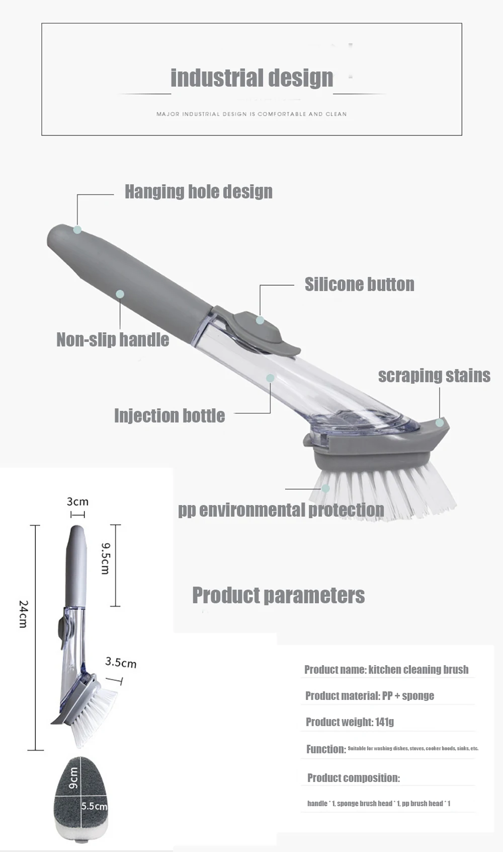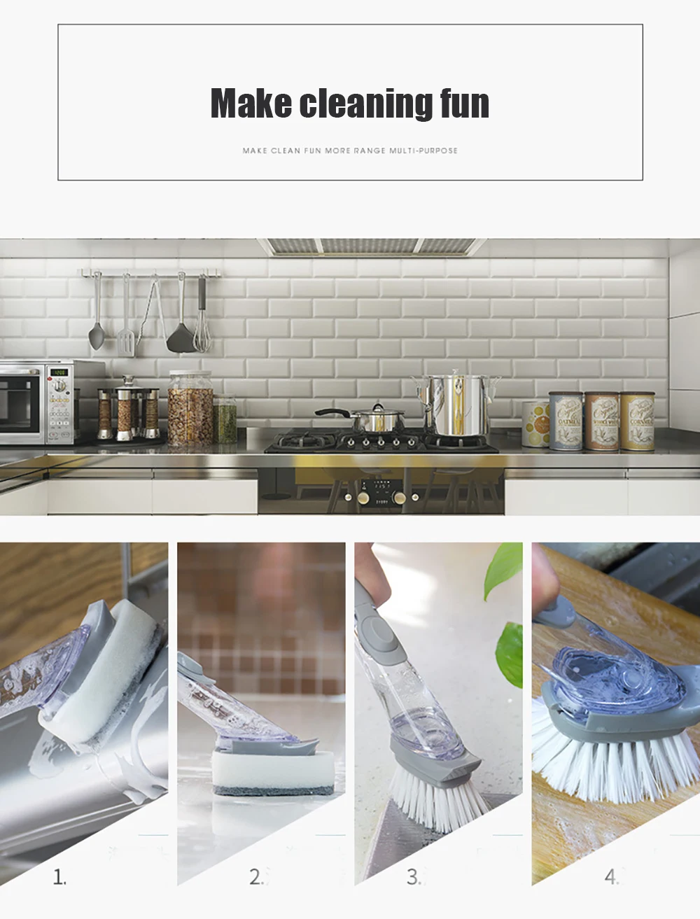 Инструменты для чистки кухни 2 в 1, щетка для чистки с длинной ручкой и съемной щеткой, диспенсер для губки, Набор Щеток Для Мытья Посуды