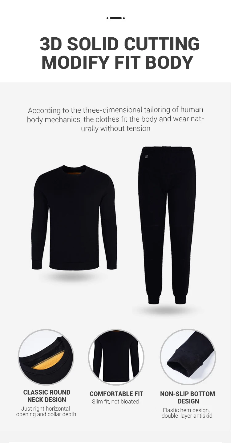 Зимнее нижнее белье с подогревом, комплект теплого термобелья с флисовой подкладкой, футболки с электрическим подогревом и штаны с USB, лыжная одежда с питанием от батарейки