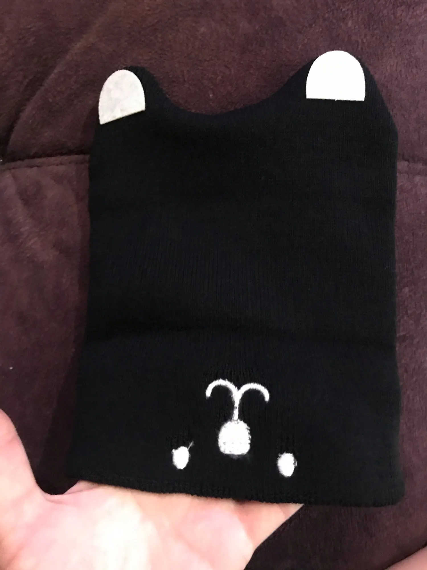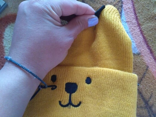 Отличная шапка, мягкий трикотаж, хорошо тянется,прошито качественно, запаха нет. Единственно, чёрные ушки сделаны из фетра и приклеены, стирать надо очень аккуратно.