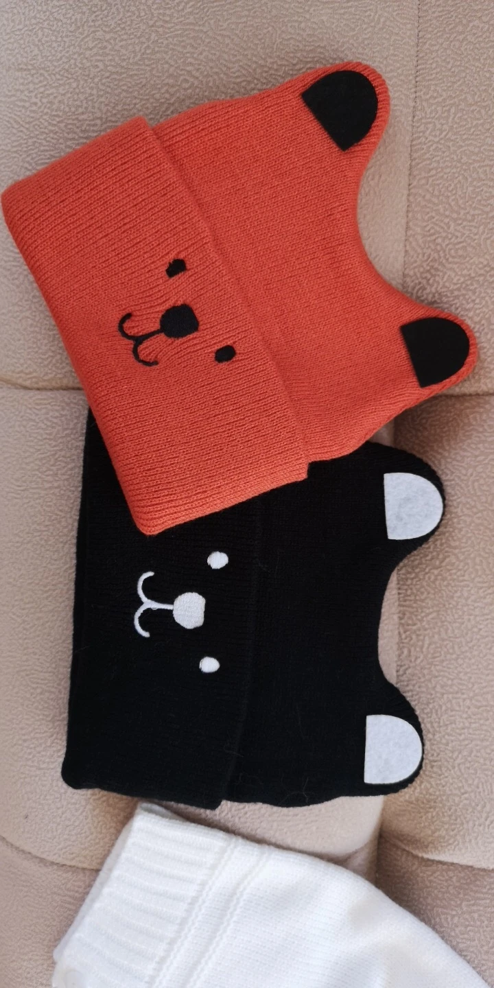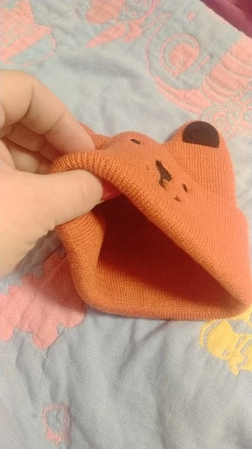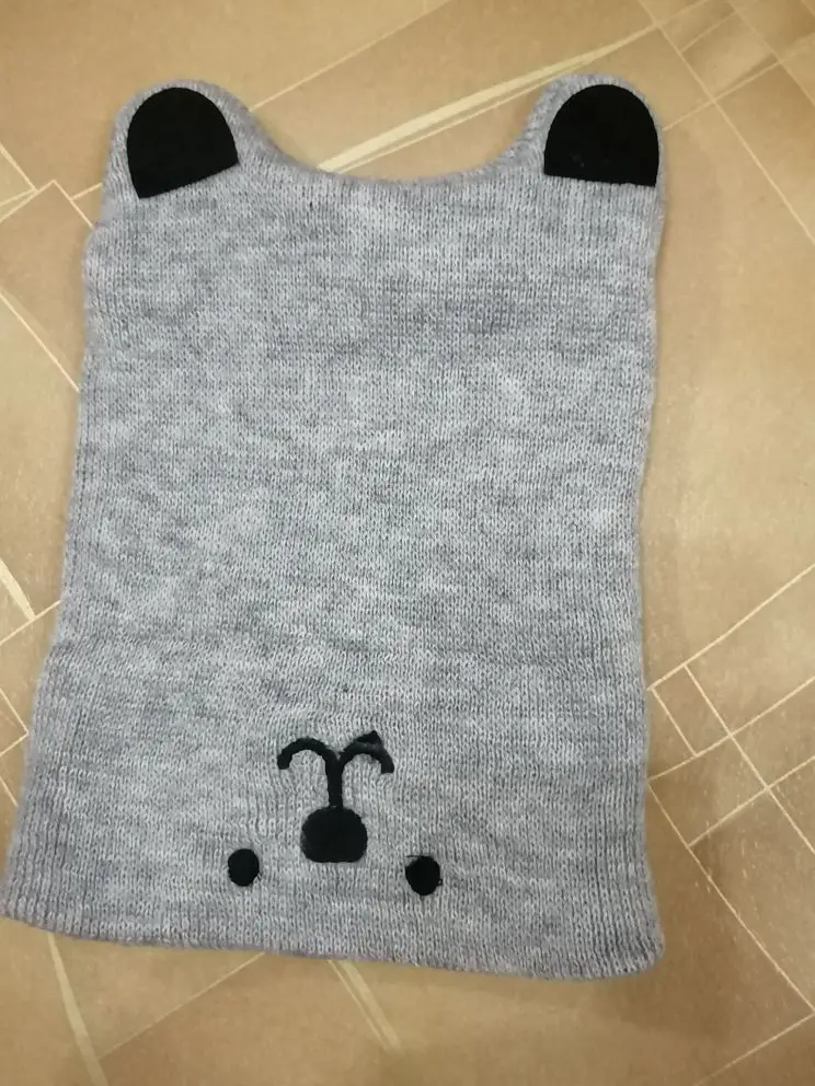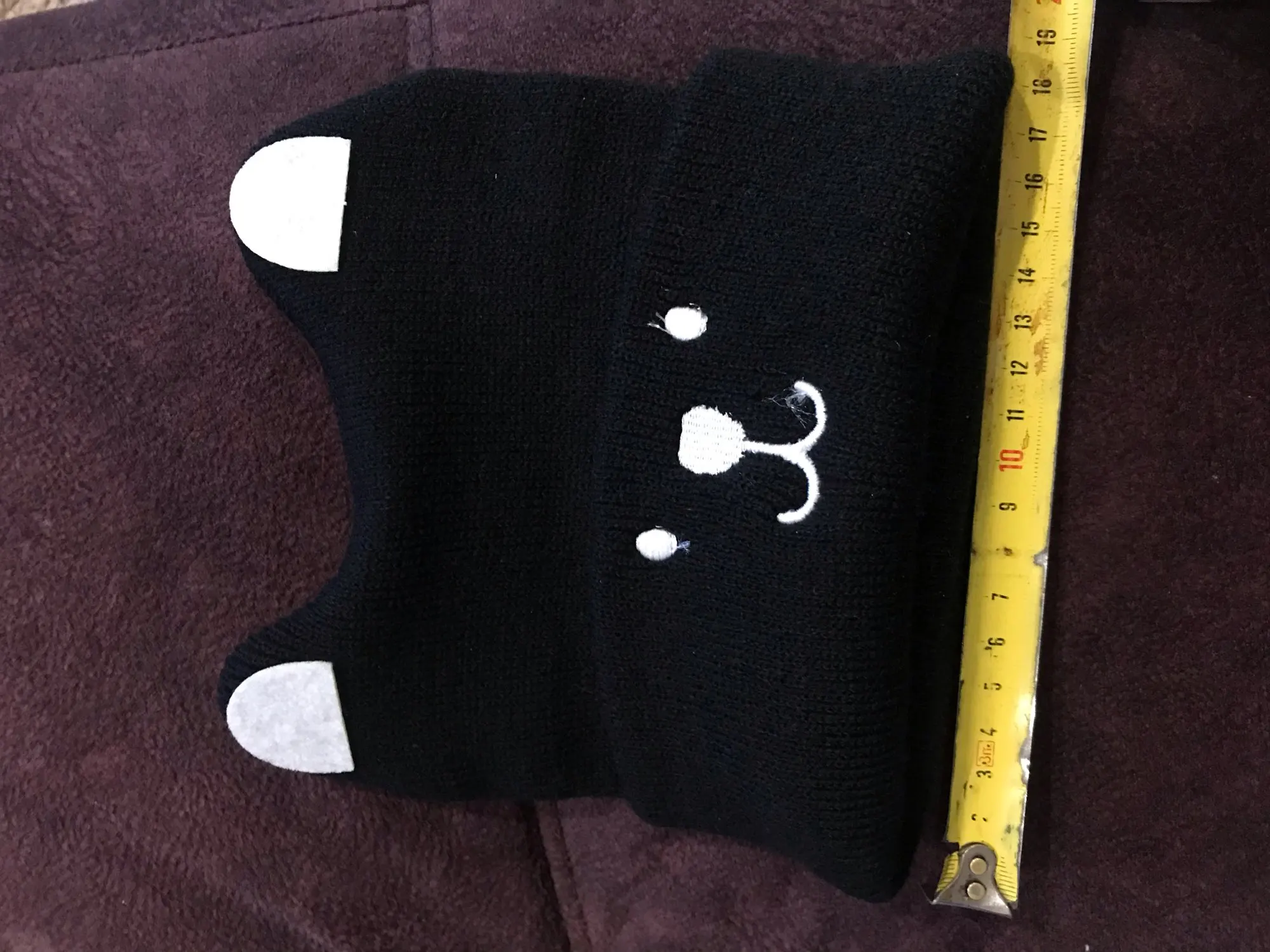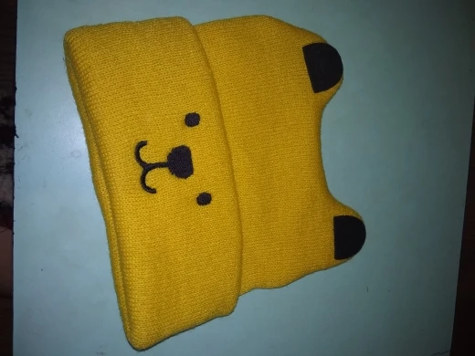 Шапка на прохладную осень,тёплую весну.Уши ассиметричные,за это снимаю звезду.Черное на ушах приклеено.Мордочка прошита.