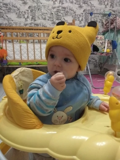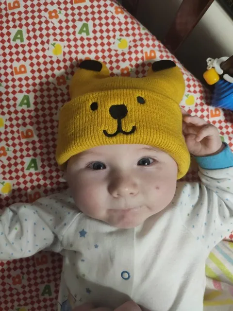 Симпатичная детская шапочка. Подойдет как мальчику так и девочке от 6 месяцев до трех лет, тк очень хорошо тянется. На осень и теплую весну. Хорошо сшита, без торчащих ниток и швов. Заказом довольна. Доставка быстрая. Спасибо продавцу