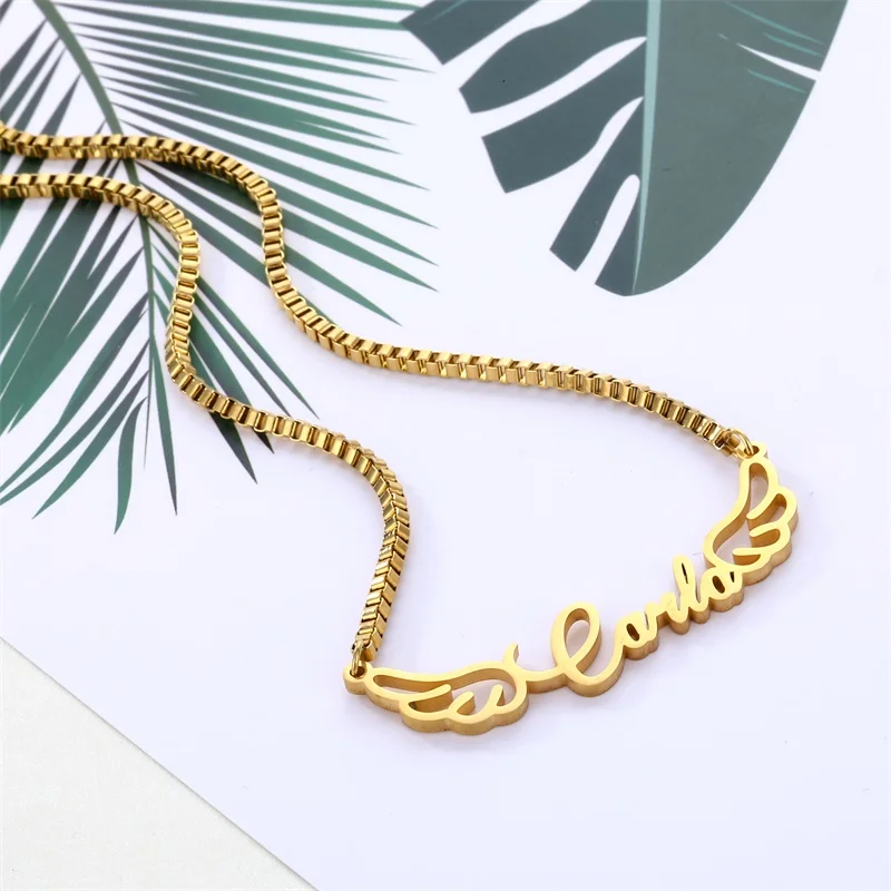 Ожерелье с именем на заказ 2020, индивидуальное ожерелье с крыльями ангела на заказ, золотое ожерелье из нержавеющей стали для женщин, подарок для лучших друзей