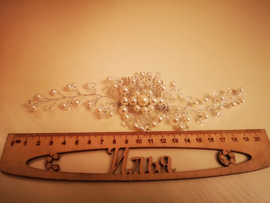 Красивое украшение для Прически. И очень легкое! Учтите, что проволочки и бусины очень легко запутываются в волосах, поэтому постарайтесь поставить его в нужное место с первого раза)))