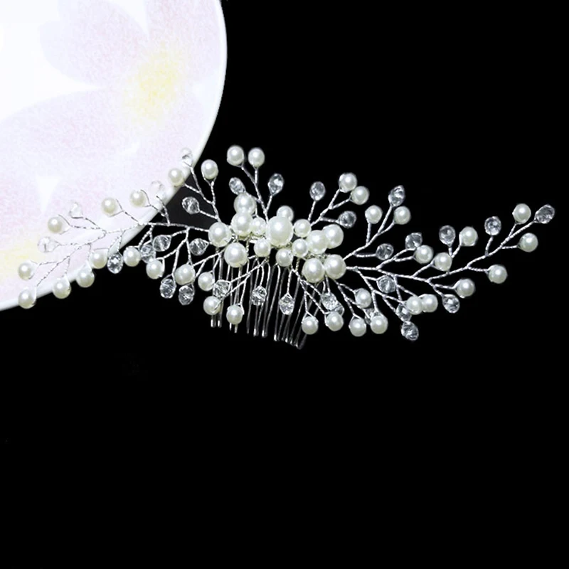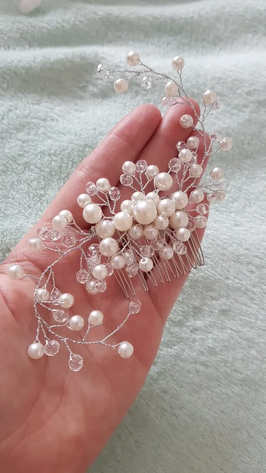Заколка для волос женская, с цветами и жемчужинами, ручной работы
