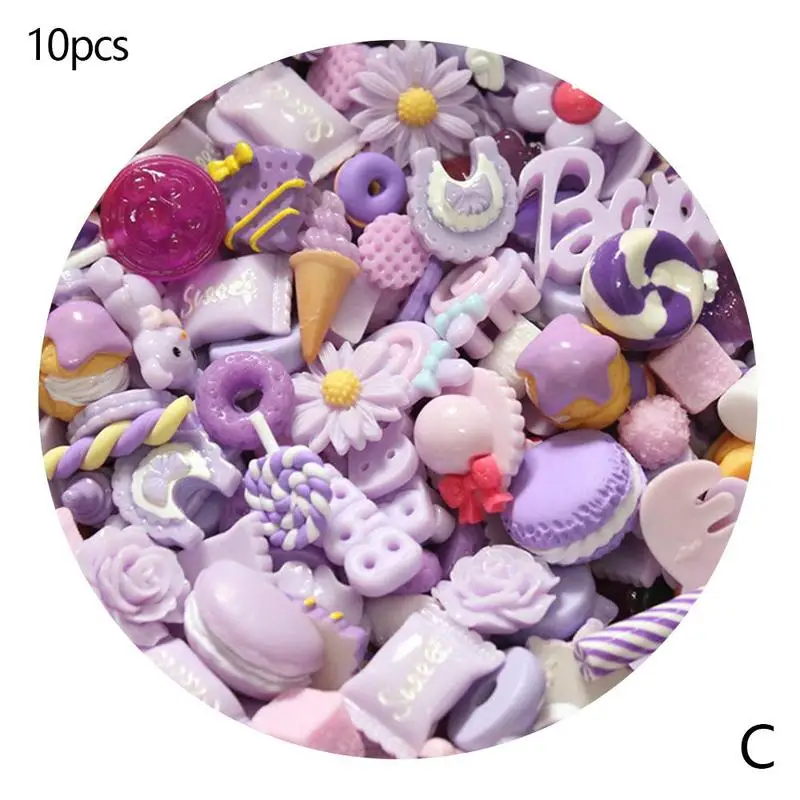 Подвески из смолы для слаймов, поставки слаймов дополнений, 10 шт., милые аксессуары для торта, фруктов, конфет, чехол для телефона