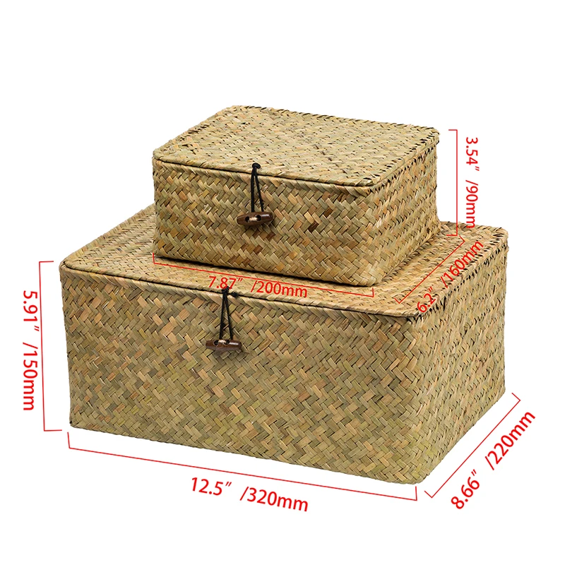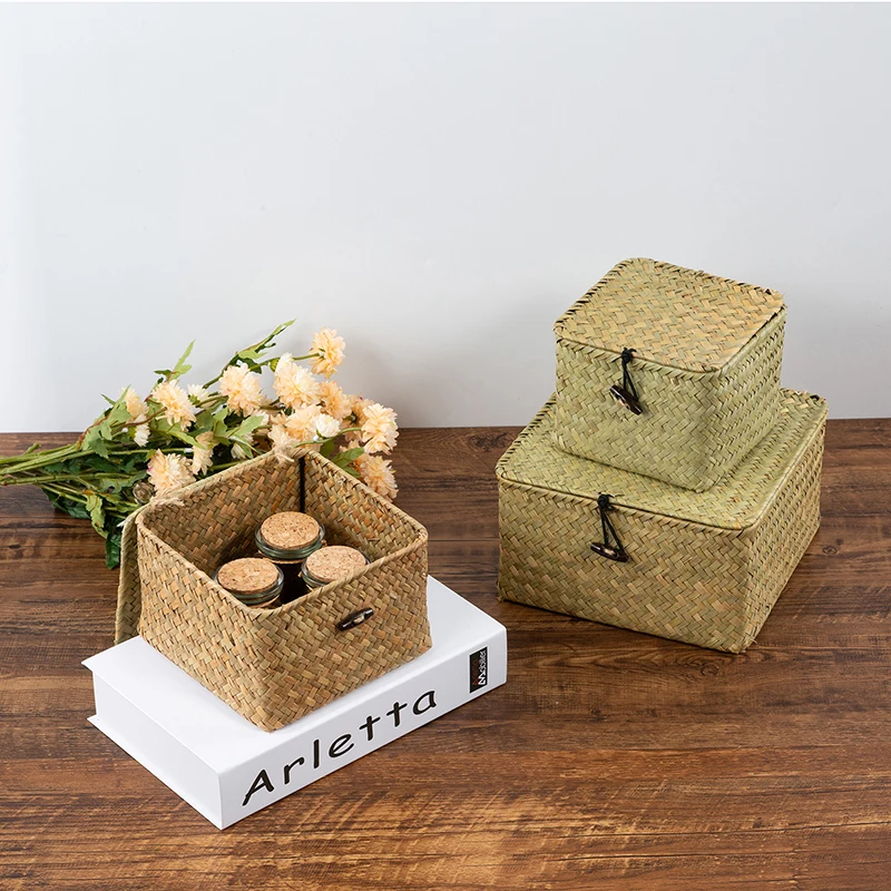 Ящик для хранения из ротанга ручной работы с крышкой, плетеная шкатулка для драгоценностей, органайзер для косметики, ящики для хранения контейнеров