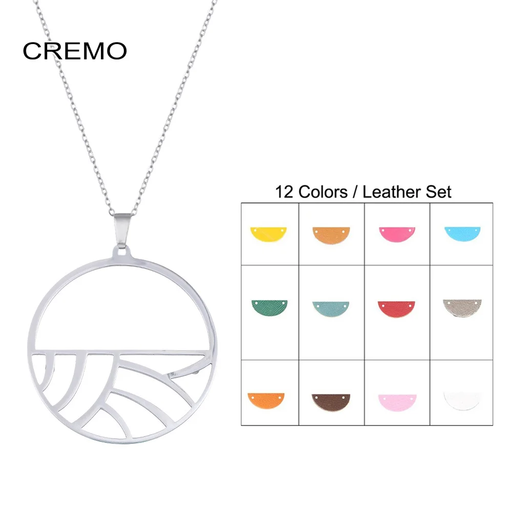 Ожерелья Cremo, подвески из нержавеющей стали для женщин, Очаровательная сменная Двусторонняя кожаная подвеска, цепочка, ювелирные изделия