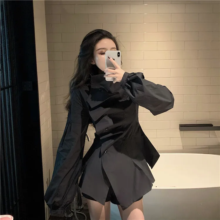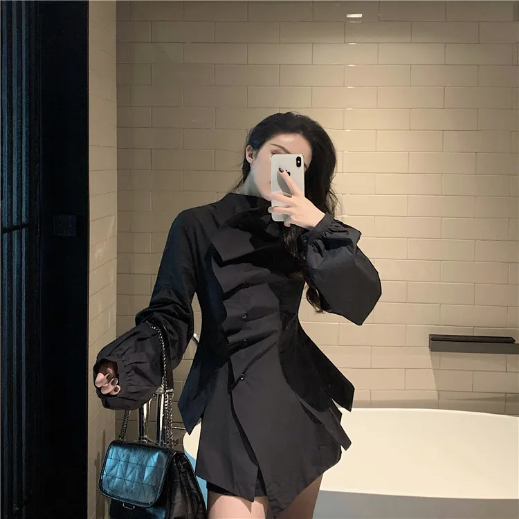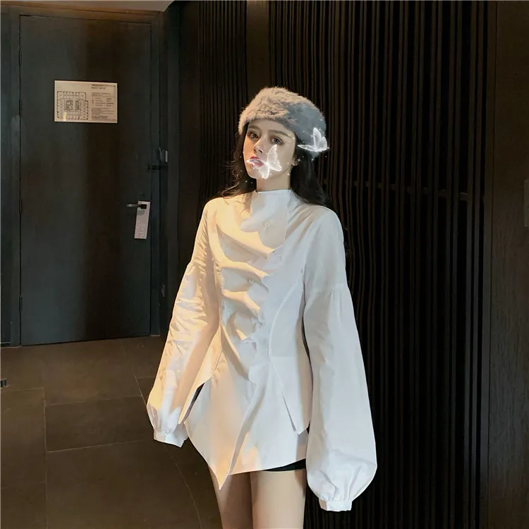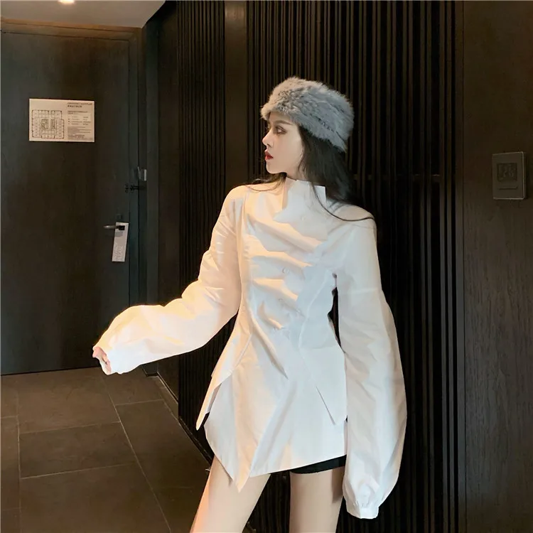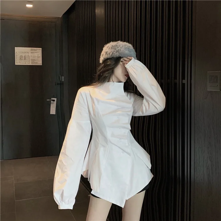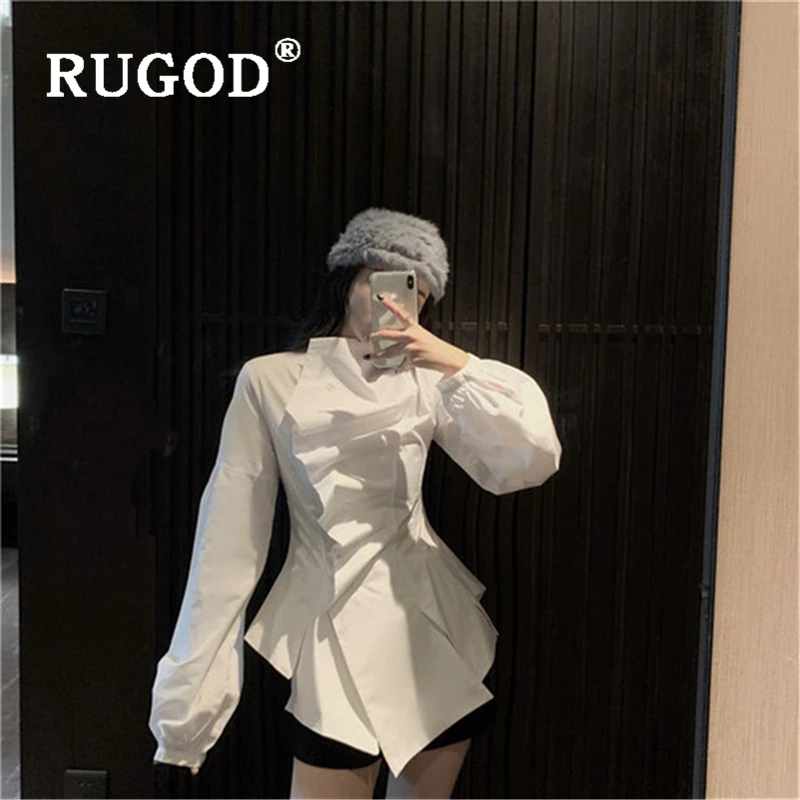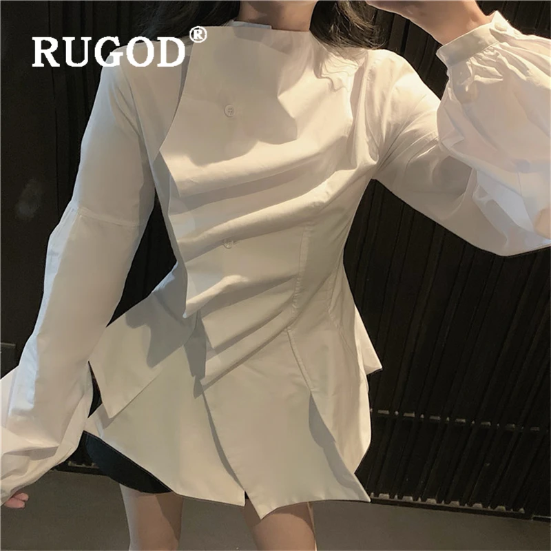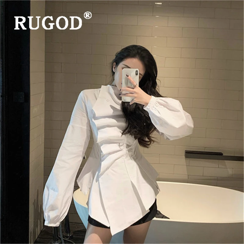 RUGOD корейский шикарный женский свитер, женский модный однотонный Асимметричный офисный женский белый свитер, повседневный стиль, тонкий весенний Топ и блузка