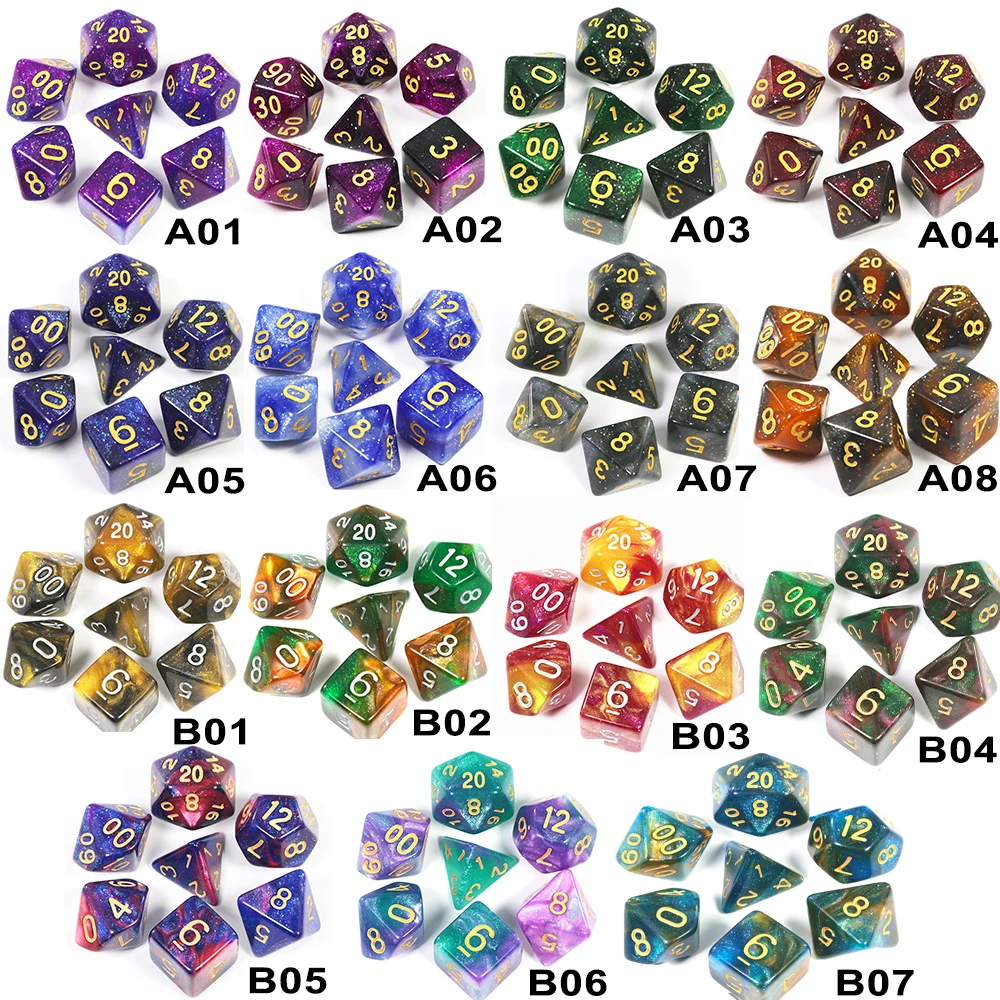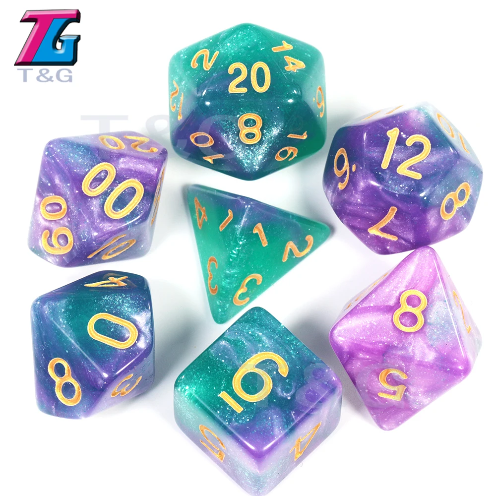 Набор игральных костей D4 D6 D8 D10 D12 D20 Изысканная креативная Вселенная Галактика тема для TRPG DND настольная игра 7 шт.