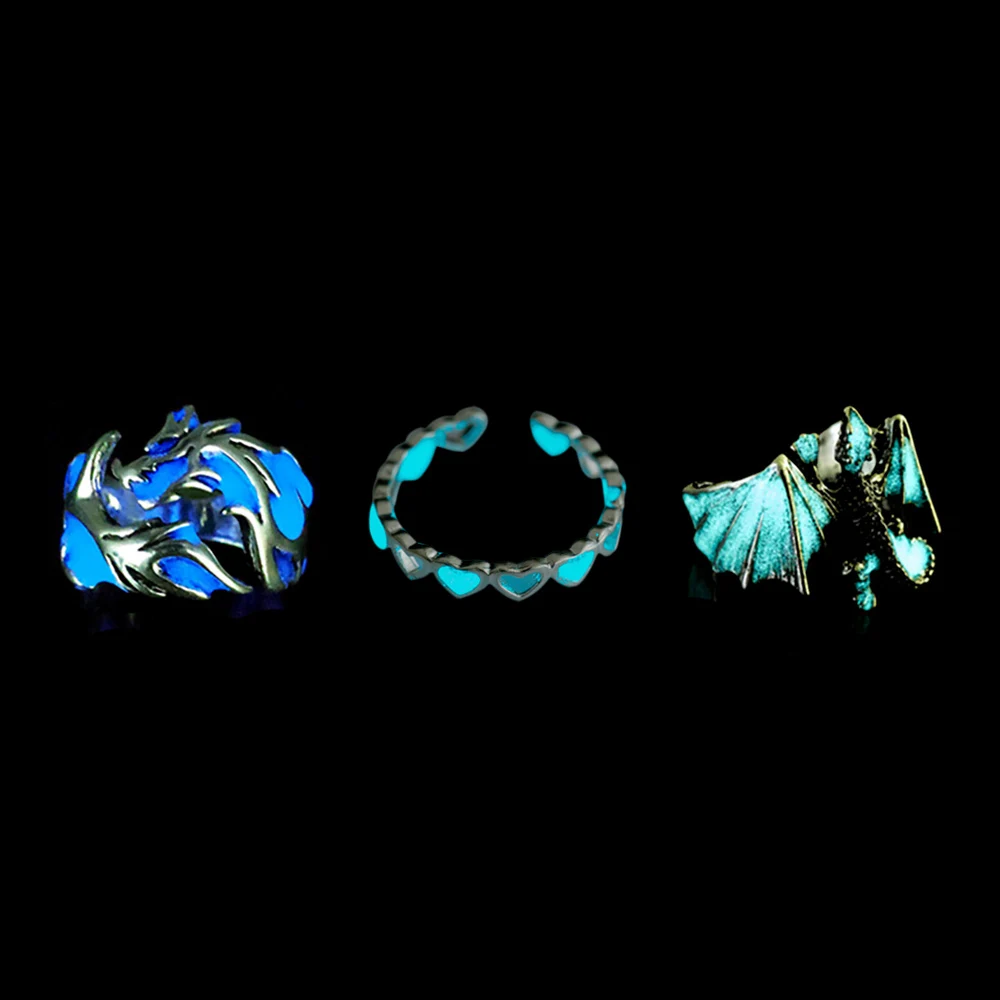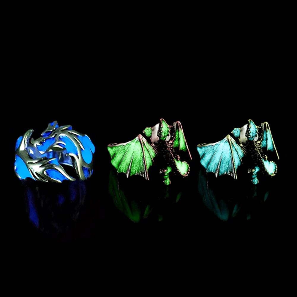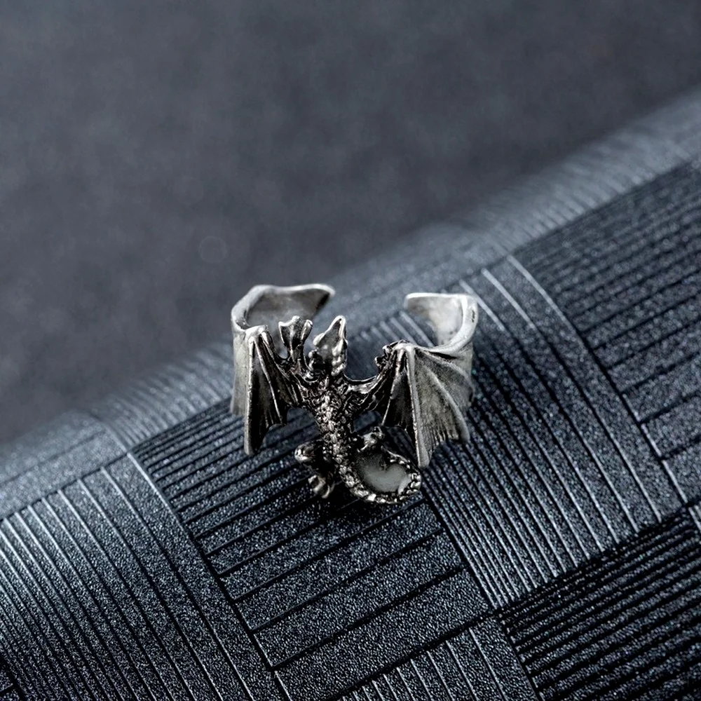 Кольцо мужское, серебристое, регулируемое, в готическом стиле, с серебристым драконом, светящееся, светится в темноте